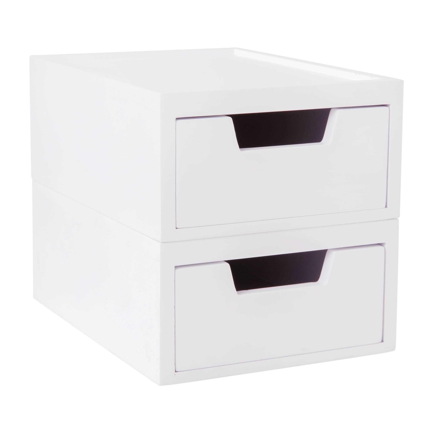 Comprised of strong and durable engineered wood, these elegant storage solutions will endure years of use in most any environment from your desktop to your bathroom vanity. The removable drawer features a trapezoidal cutout for easy opening and closing, and may be removed completely to suit your needs. A stackable design enables you to optimize vertical real estate making these storage drawers ideal for small spaces. Grooved tops and recessed bottoms ensure the organizer stays put when stacked to maintain a neat and tidy appearance.