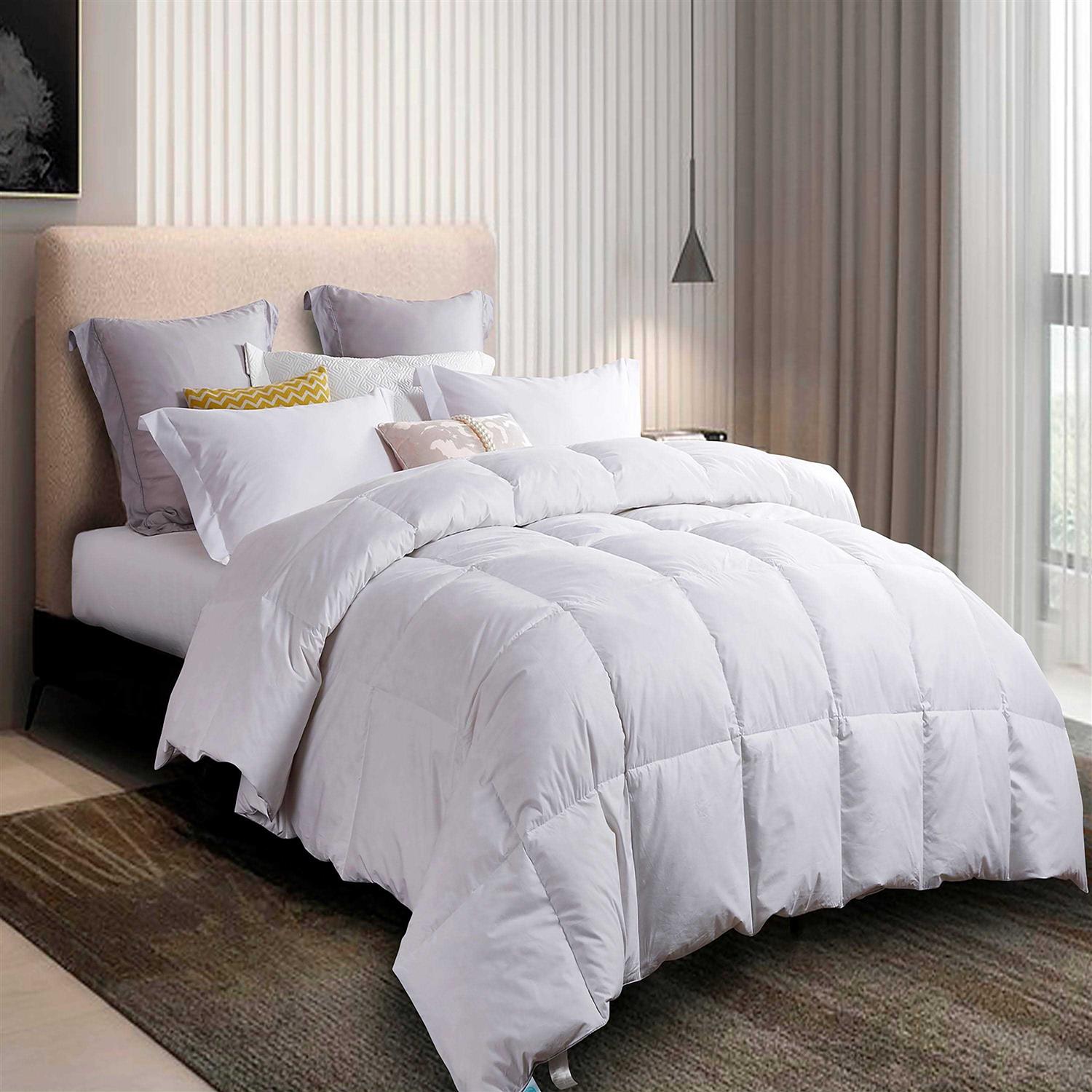 This generously filled Martha Stewart comforter gives you the look and feel of an all down filled comforter for a fraction of the cost, featuring a super soft, breathable cotton cover and end-to-end sewn through box quilting to provide you the ultimate sleeping experience. Full/Queen. 88″x88″. Boxes.