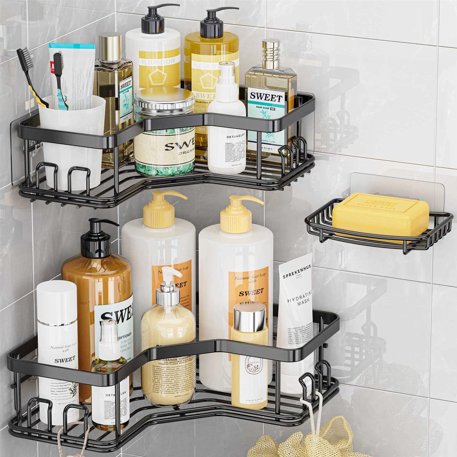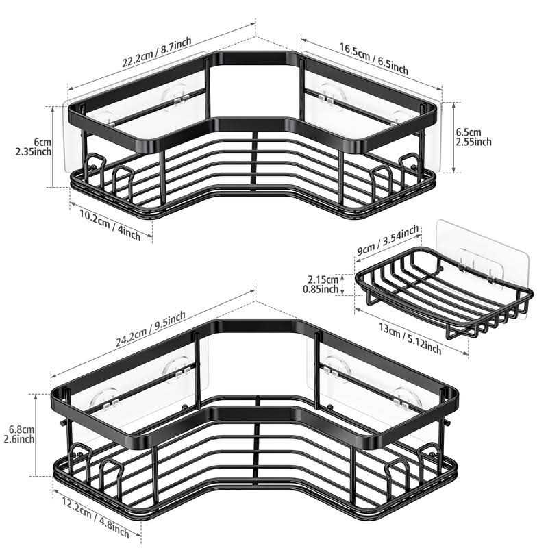 Shower Caddies by MAXIFFE. Details:MAXIFFE Corner Shower Caddy With Sopa Dish Modish accessory in you home decoration Maximize Your shower Space The shower organizer have sleek design and premium materials. 2 extra adhesive shower caddy with 8 hooks and 1 soap dish could meet your various needs SUS304 Stainless Steel The shower racks is made of SUS304 stainless steel, adopts the quality of excellent sturdiness.They would never rust after years of use. The hollow design make them drain and dry quickly, keeping your shower items clean and tidy. 40lbs load-bearing The latest upgraded adhesive can load up to 40lbs. Each shower caddy can load at least 6 full-size shower bottles like shampoo and conditioner. The extra soap dish keeps soap separate for easy access. No-tool-required installation: 1. Clean the surface 2. Mark the adhesive location with shower rack attached 3. Detach the caddy and separately stick the adhesive 4. Wait 24hours before using 5. Put the shelf back on Remove…