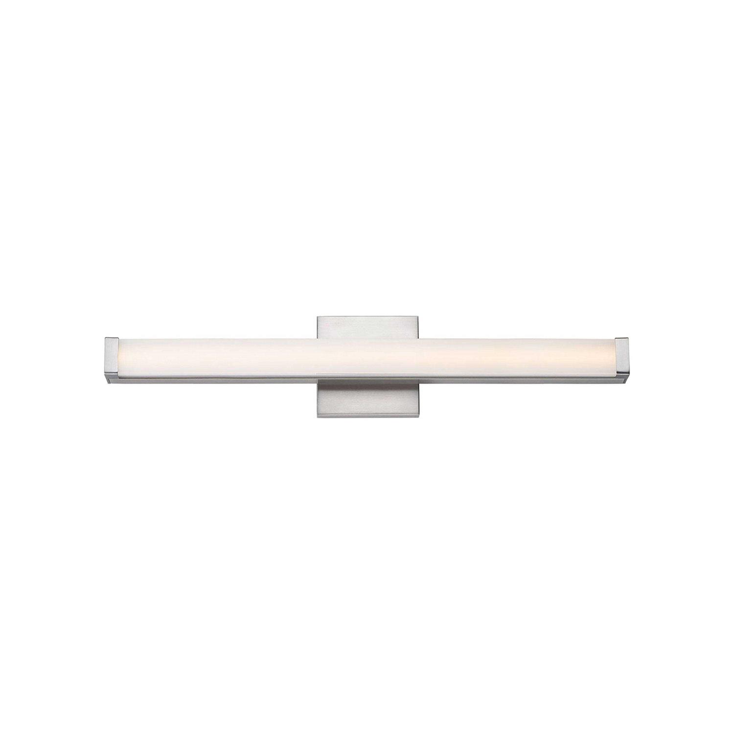 Illuminate your space with the Maxim Lighting 52002SN! This Spec collection bath vanity is the epitome of utility and style. With its sleek satin nickel finish, it adds a touch of elegance to any room. The Spec 24″ LED bath vanity consumes only 16 watts, while providing an impressive 1250 lumens of bright, energy-efficient light. Perfect for damp areas, this fixture is damp rated, ensuring durability and longevity. With its integrated LED technology and 3000k color temperature, this 24-inch wide beauty will transform your space into a vibrant oasis. Get ready to be thrilled by the brilliance of Maxim Lighting!