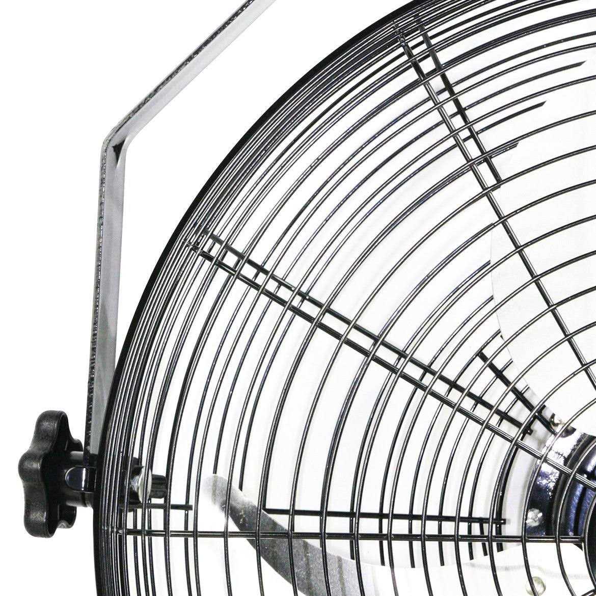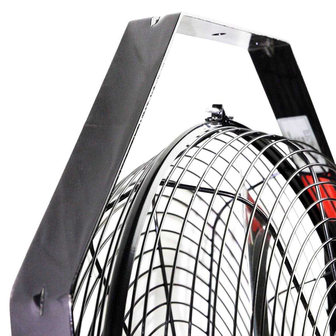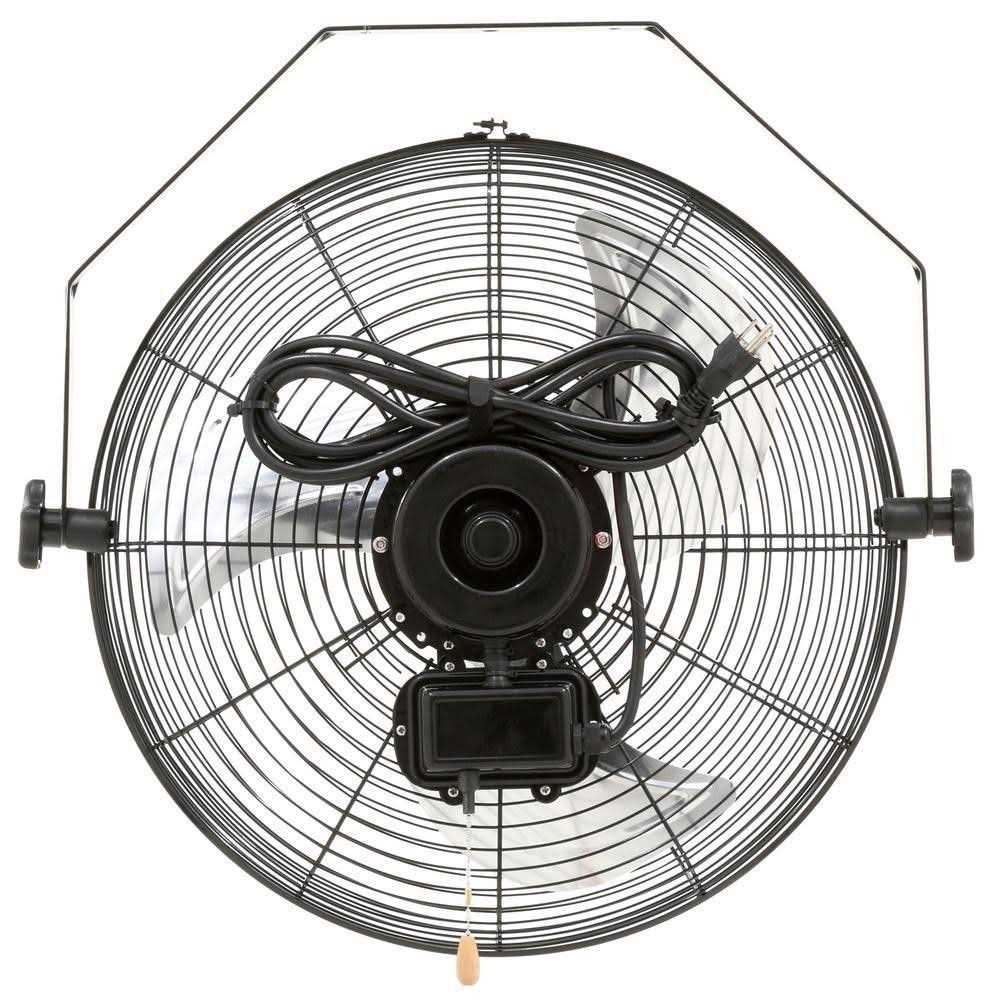 This 18-inch wall mount fan is a great choice for barns workshops or garages. This fan can be wall-mounted or a hanging fan where floor space is limited when overhead circulation is required and for harsh indoor environments. It features totally enclosed dust proof energy efficient PSC motor – 120 volt 60Hz and 0.7 Amps. It has a 3-speed pull chain rugged hanging bar and the fan head tilts 180 degrees. It is made of powder-coated steel OSHA compliant rust resistant grilles and a 10-foot cord.