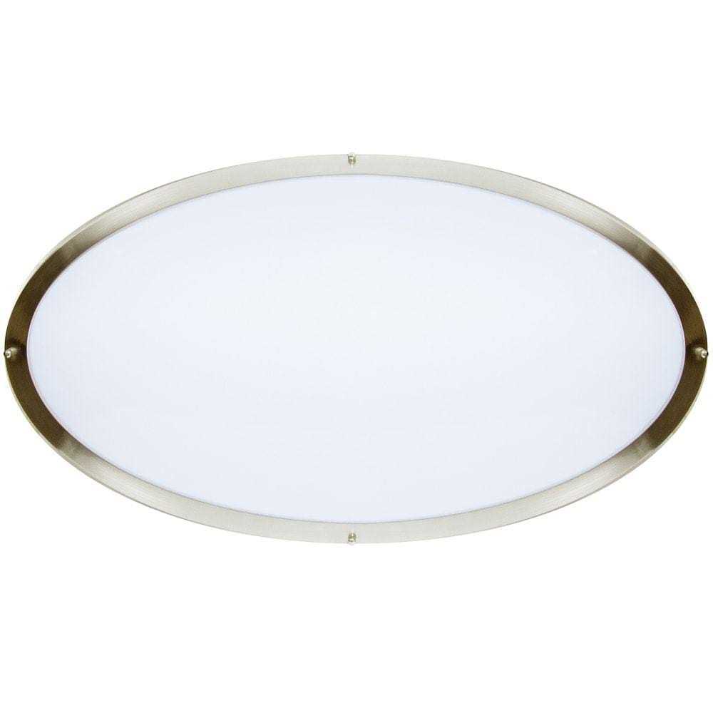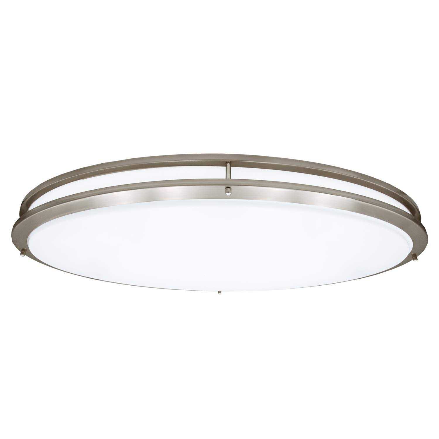 This large flush mount 32 in. oval LED ceiling light is the perfect light for any area where a large ceiling fixture is needed. Featuring a dual-ring metal trim and white diffuser lens, this oval-shaped fixture fits into a variety of decor styles while evenly distributing light to large areas. This light has color selectable switches under the lens so you can choose your desired light color from 3000K, 4000K and 5000K. Both switches will have to be on the same color temperature in order to have an even distribution of light color. It has a 120° beam spread and is dimmable, allowing you to adjust the brightness level in the room. This ceiling light is ideal for lobbies, entryways, office spaces, kitchens, living rooms and other large spaces. Ideal for both residential and commercial applications, this energy-efficient light provides 5500 Lumens of warm white light, neutral white light or daylight. It uses just 52-Watt of energy, comparable to a 243-Watt incandescent light fixture. It is rated for 50,000 lifetime hours and can be installed in damp locations. This close-to-ceiling LED fixture is ETL Listed and is backed by Maxxima for 3-years.