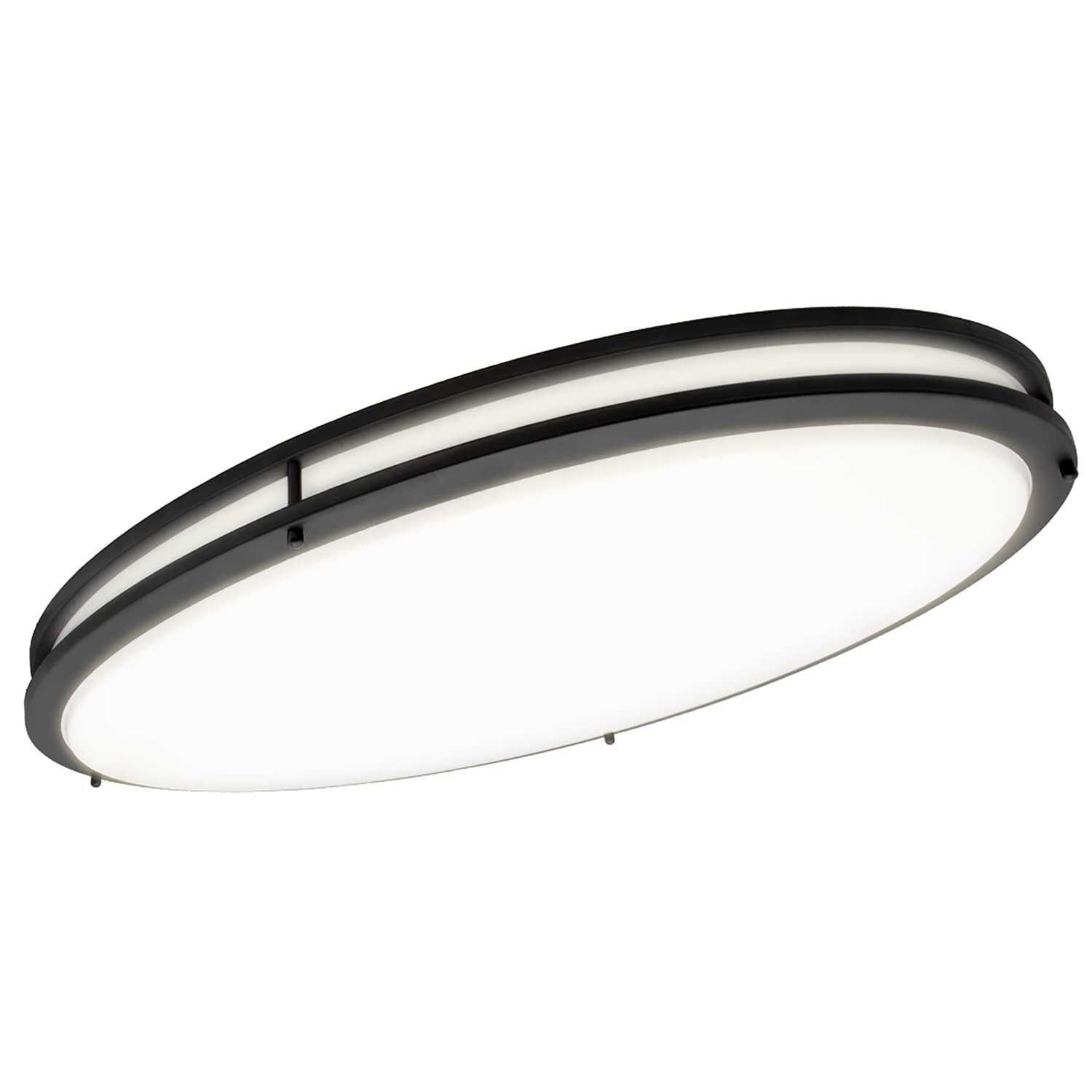 This large flush mount 32 in. oval LED ceiling light is the perfect light for any area where a large ceiling fixture is needed. Featuring a dual-ring black trim and white diffuser lens, this oval-shaped fixture fits into a variety of decor styles while evenly distributing light to large areas. This light has a color selectable switch under the lens so you can choose your desired light color from 3000K, 4000K and 5000K. It has a 120° beam spread and is dimmable, allowing you to adjust the brightness level in the room. This ceiling light is ideal for lobbies, entryways, office spaces, kitchens, living rooms, and other large spaces. Ideal for both residential and commercial applications, this energy-efficient light provides 5000 Lumens of warm white light, neutral white light or daylight. It uses just 52-Watt of energy, comparable to a 243W incandescent light fixture. It is rated for 50,000 lifetime hours and can be installed in damp locations. This close-to-ceiling LED fixture is ETL Listed and is backed by Maxxima for 3-years.