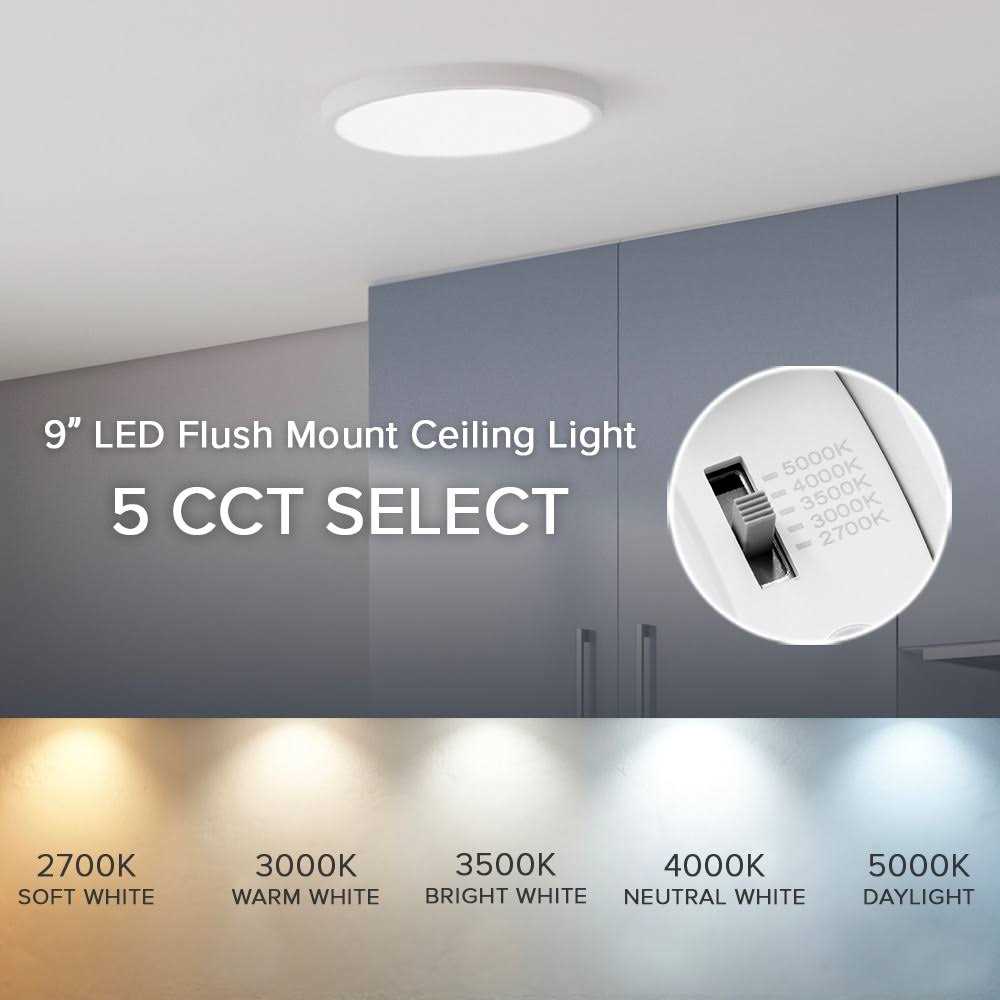 This 9-inch LED panel ceiling light has a low profile design, white finish and is only 0.95 inches in depth. It is color selectable allowing you to choose the proper lighting for your installation from 2700K, 3000K, 3500K, 4000K and 5000K. It is an energy-efficient disk light that uses only 17 watts of energy, equivalent to a 90-watt incandescent light. It produces 1500 lumens of soft white, warm white, bright white, neutral white or daylight. This LED round panel light features driver-on-board technology and can be easily mounted onto a 3.5 or 4 hole for a standard junction box or you can utilize the provided E26 quick connector and torsion springs in a 5 or 6 recessed can. You can easily change the color temperature by utilizing the switch found on the back of the fixture. This panel light is perfect for laundry rooms, bedrooms, entryways, mudrooms, closets, hallways, apartments, condos and more. It is suitable for wet locations making it perfect for outdoor soffits, breezeways and other outdoor settings. Its dimmable feature allows you to choose the proper brightness for any placement. Mounting hardware is included as well as a detailed instruction manual.
