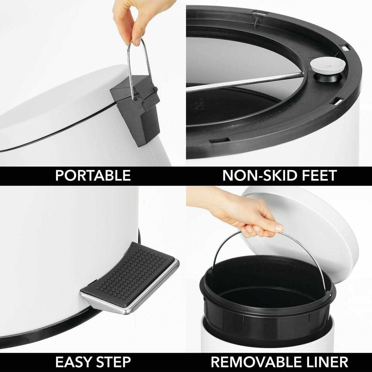 This Small Step Trash Can Wastebasket by mDesign is perfectly sized for large or small spaces. This compact, stylish can has plenty of room for your recyclables and garbage. Made of high-quality durable metal, this can withstands everyday use. It can be used for trash, recycling or storing small household items. This 1.3 Gallon/5 Liter step can features hands-free opening and closing. The removable liner bucket has a metal handle which makes emptying waste effortless and hassle-free. Modern living by design.
