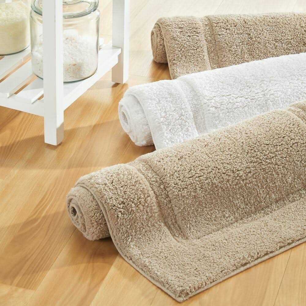 Add subtle style and a whole lot of comfort to your bathroom floors with this Soft Cotton Bathroom Rug from mDesign. Made of super-soft cotton, this rug is highly absorbent, keeping your bathroom floors clean and dry. Place this rug in front of the bathtub, shower, or in front of bathroom vanity or countertop for a plush, cozy place to stand. The decorative border adds a sophisticated accent to any decor while adding a warm layer to bathroom floors to keep your feet warm. Available in different sizes and shapes to fit your needs, find the rug or set that works best for your home. modern living by Design.