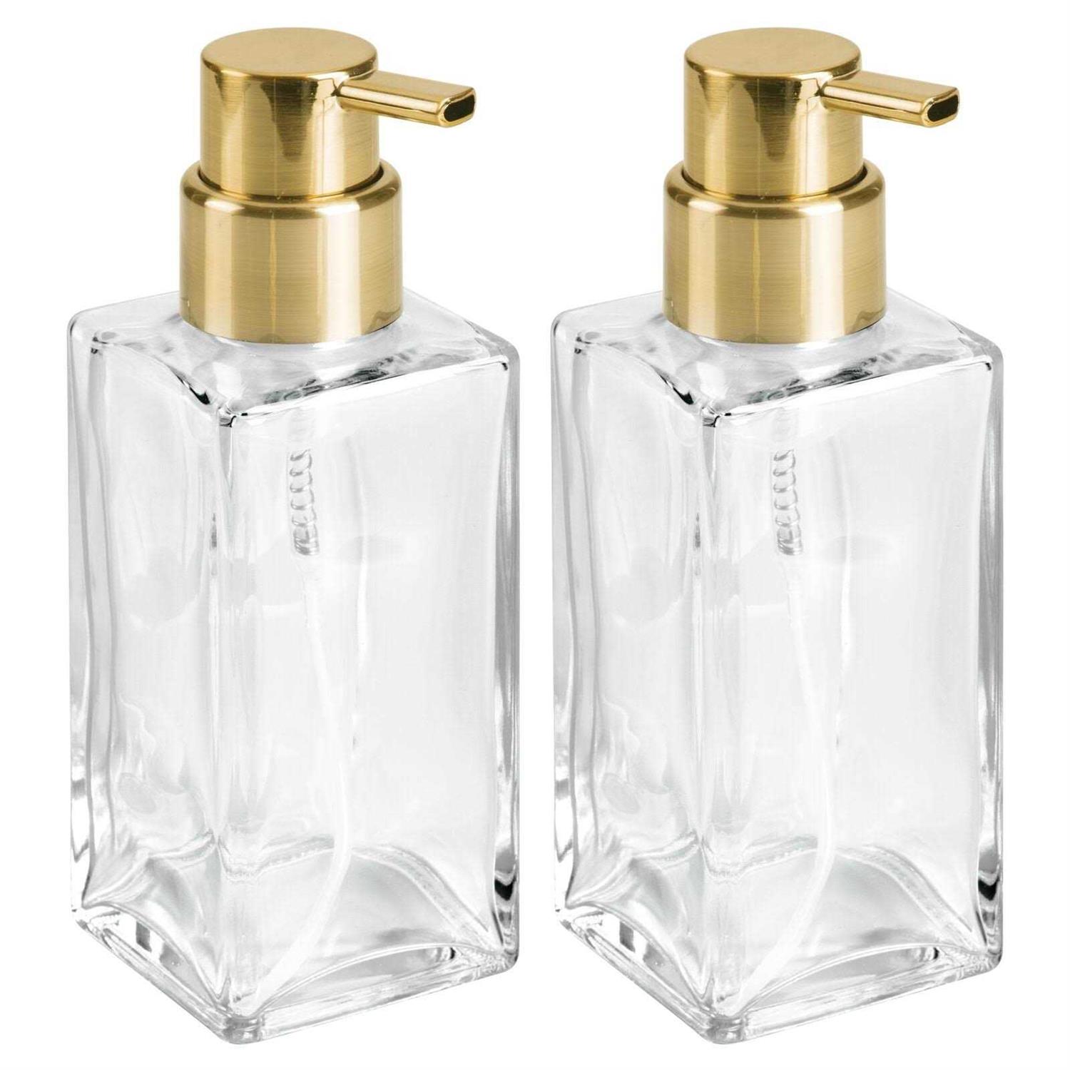 The mDesign glass square foaming soap dispenser pump is a stylish accessory for your bathroom vanity. The chrome tones of the pump head will go with any color scheme or decor in your bathroom space. Holding fourteen ounces of liquid foaming soap, this easy-to-operate soap dispenser will complement any traditional or modern bathroom. To refill, simply combine one part liquid soap with five parts water or use a foaming soap solution. This classic and chic shape will work with any bathroom vanity.