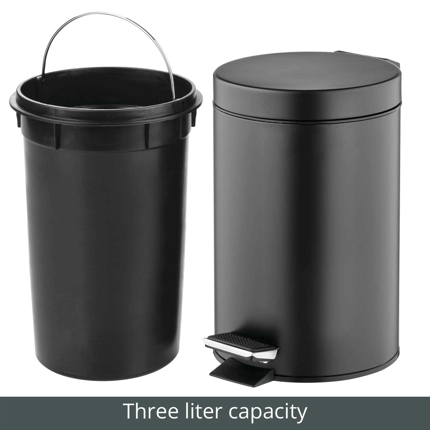 This Step Trash Can Wastebasket by mDesign is perfectly sized for large or spaces. This compact, stylish can has plenty of room for your recyclables and garbage. Made of high-quality durable metal, this can withstands everyday use. It can be used for trash, recycling or storing household items. This 1.3 Gallon/5 Liter step can features hands-free opening and closing. The removable liner bucket has a metal handle which makes emptying waste effortless and hassle-free. modern living by Design.
