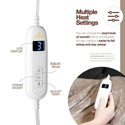 Medical king Heated Blanket, Machine Washable Extremely Soft and Comfortable Electric Blanket Throw Fast Heating with Hand Controller 10 Heating Settings and