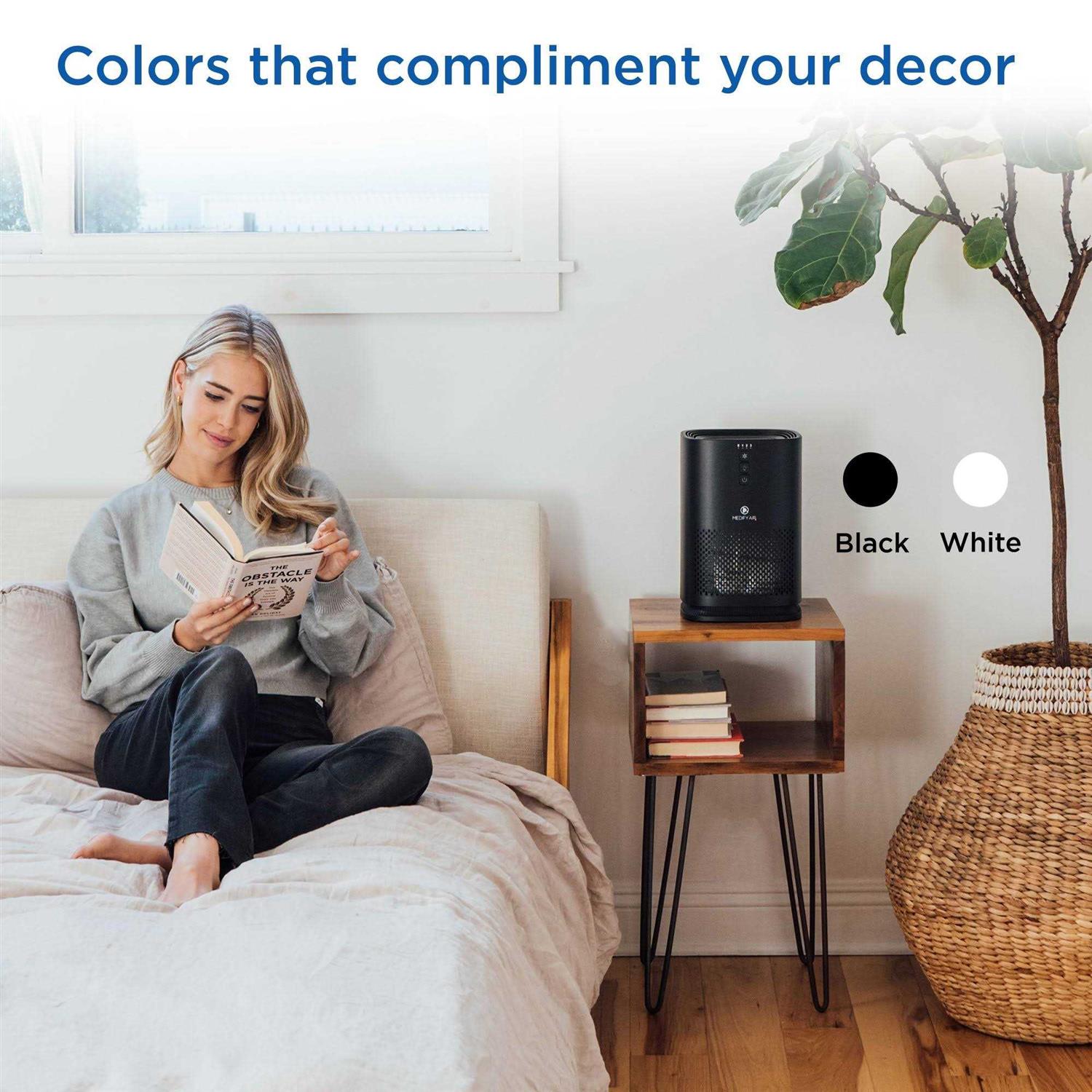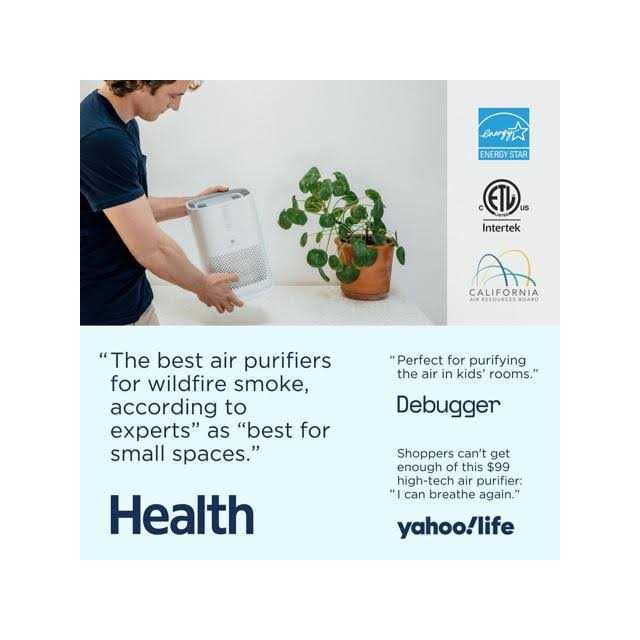 MAXIMUM COVERAGE: Cleans small spaces up to 400 sq ft in one hour, 200 sq ft in 30 minutes (CADR 120). Ideal for homes, apartments, bedrooms, living rooms, offices, schools, universities, classrooms, hospitals, restaurants, and other businesses. HEPA H13 FILTRATION: Trusted to remove 99.9% of harmful particles including allergens, odors, VOCs, smoke, pollen, pet dander, dust, smog, contaminants, and more down to 0.1 microns in size. Captures finer particles than HEPA H11 (0.3 microns). ULTRA QUIET: Choose from 3 fan speeds, with the lowest setting operating virtually silent. Runs at 110 Volts at a maximum noise level of 55 dB. For the most discreet operation, enable sleep mode to completely dim the unit’s panel lights. EASY TO USE FEATURES: Control panel includes fan speed, night light, sleep mode, and a filter replacement indicator so you know when it’s time to replace the 360 degree filter. QUALITY TESTED & BACKED: CARB, ETL, and Energy Star certified. The replacement filter (B07VF25QJ6) lasts 2,500 hours or about 3-4 months. EPA Reg Num: 99452-DVC ; CARB EO Num: G-19-142
