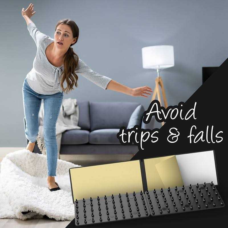 Help prevent a skid or fall in the home or office. Simply remove the backing plastic revealing the sticky strip and press into position! No more dangerous sliding, curling and slipping of your rug. These grips have the unique SPLITTABLE feature allowing you to DOUBLE the number of grips.