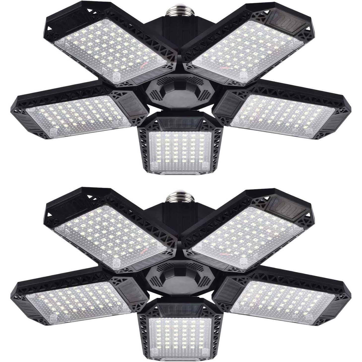Mefflypee 2 Pack LED Garage Lights 120W Deformable LED Garage Ceiling Lights with 5 Adjustable Panels