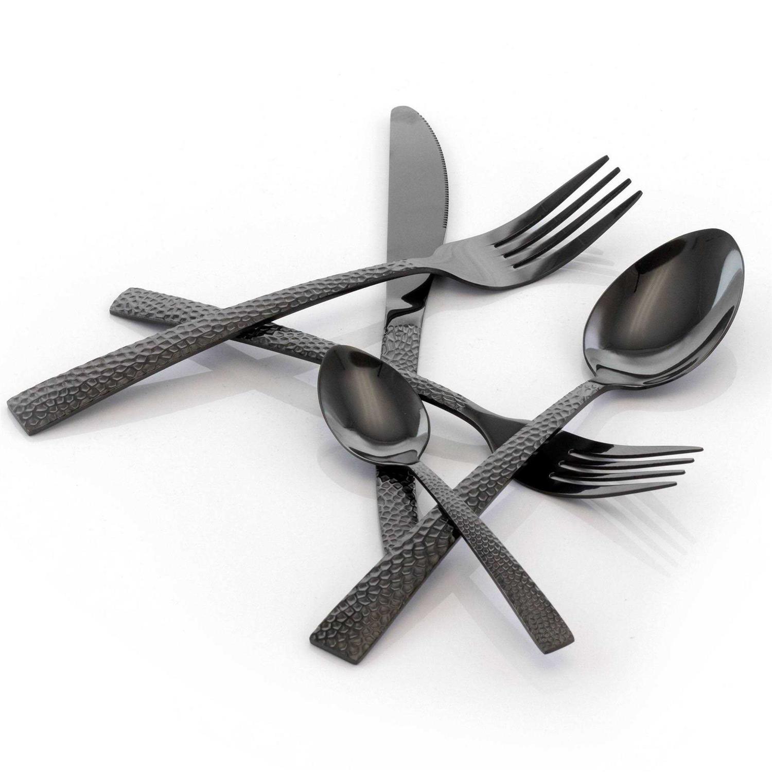 Each utensil is made from durable stainless steel for long-lasting use. Set includes 4 dinner forks, 4 dinner knives, 4 dinner spoons, 4 teaspoons and 4 salad forks. Durable stainless steel construction. Dishwasher safe.