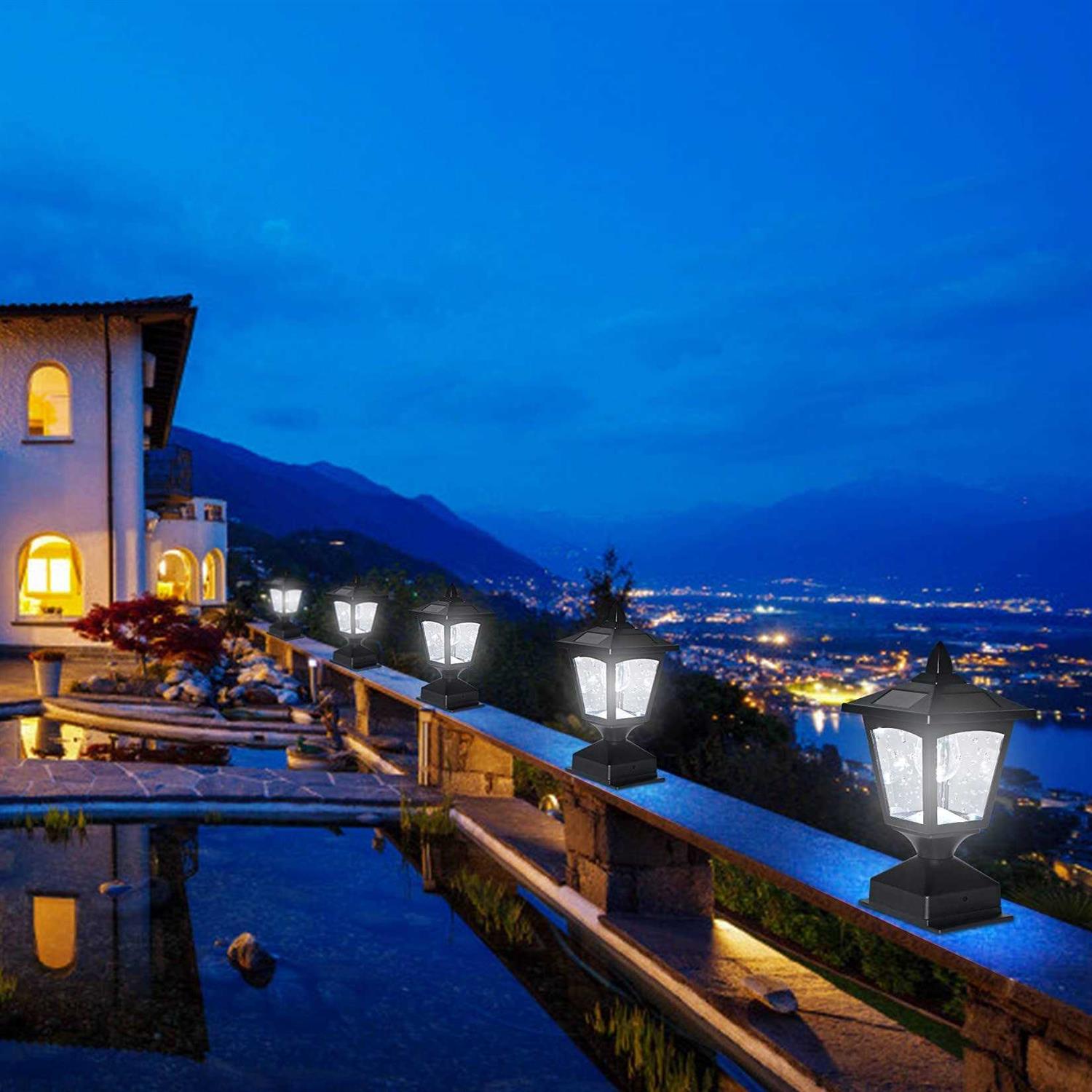 Weatherproof Designthe Fence Post Solar Lights Can Work Normally Under All Kinds Of Weather, No Worries About Rain, Snow, Frost, Or Sleet. It Will Withstand Harsh Heat, Heavy Downpour, And Snow. You Can Rest Assure To Use, In Any Outdoor Environments. Solar Post Lights Outdoorthe Solar Post Lights Made Of Hight Quality Plastic And Bright With 15 Lumens Led. The Solar Lamp Post Lights Has A Retro Classic Lantern Shape That Is Perfect For Garden Decoration.the Fence Post Solar Lights Can Completely Cover 4×4 Wooden Posts Or Above 4×4 Post Flat Surface (Note:our Base Can’t Cover 5×5 6×6 Post) Solar Powered Post Lightsthe Solar Post Cap Lights Has 4 Update Solar Panels, Powered By Solar, Charged In Full And Direct Sunlight For 6-8 Hours, The Lights Automatically Turn The Lights On At Dusk And Off At Dawn. It Is Energy-saving, Efficient And Simple Disassembly. Easy To Installusing The Included Screws, The Solar Post Lights Can Be Easily Installed On The Railing, This Solar Post Cap Light Does Not Require Any Wiring And Is Entirely Maintenance-free. Before You Use The Post Light First Time, Please Put It In A Sunny Place To Charge It For More Than 12 Hours. Light Your Patio And Lifethe Outdoor Solar Post Lights Perfect For Driveway, Walkway, Sidewalk, Posts, Decks, Patios, Fences, Around Your Patio Or Porch.also You May Also Choose To Mount It On Outdoor Tables And Other Flat Surfaces.