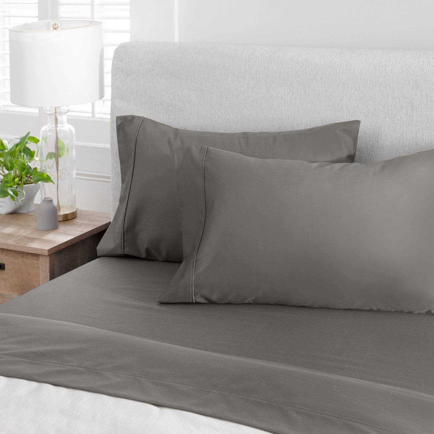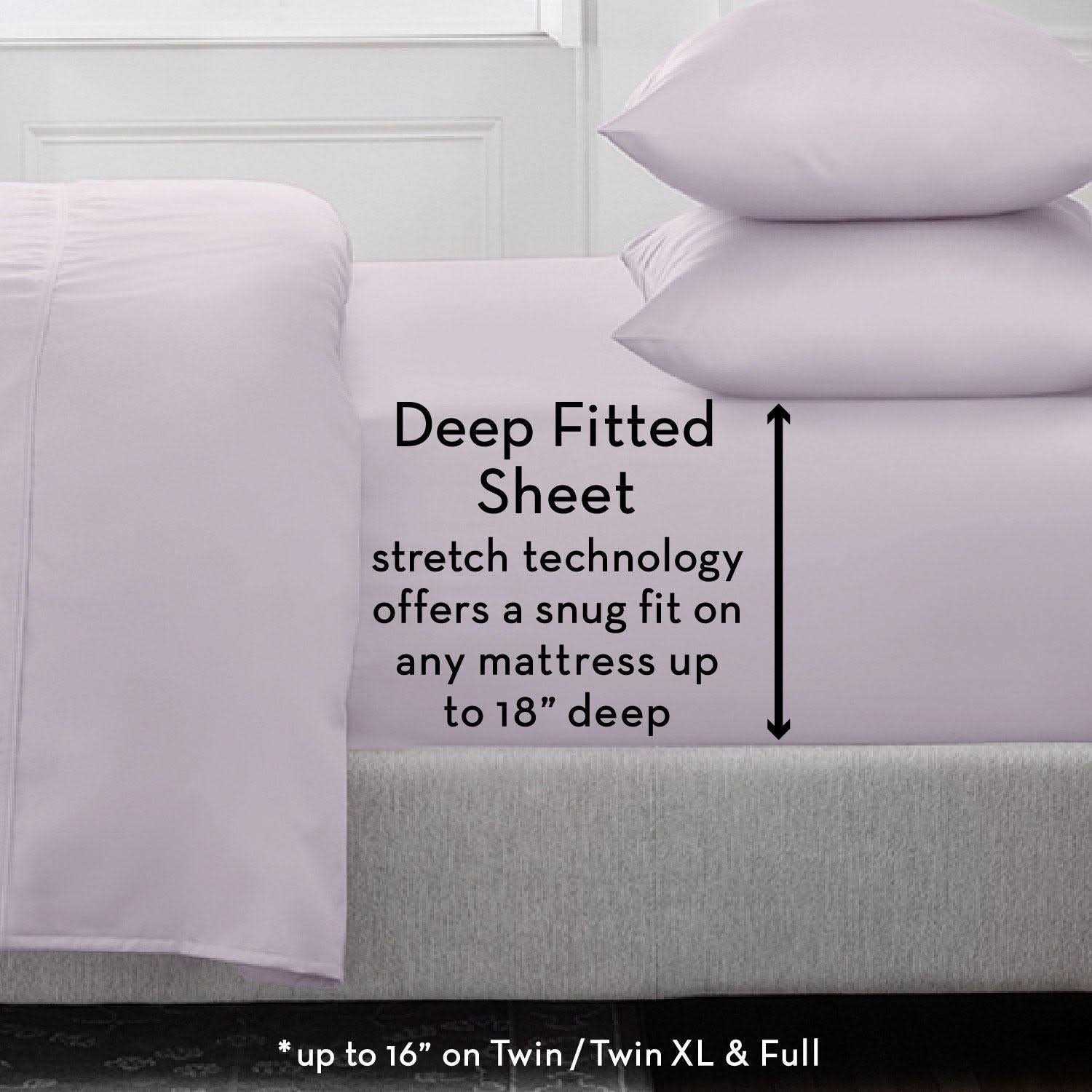 Highlights 100% HygroCotton Silky sateen weave Anti-microbial finish Flexi-Fit Technology Description Simply sleep more comfortable any season with a sheet set of resting-essentials designed by Member’s Mark. Crafted with a super-soft 100% HygroCotton , keeping you warm when it’s cool, and cool when it’s warm plus other added technology for a great sleep. HygroCotton is spun using hollow-core yarns, a revolutionary process allowing for more breathable-temperature regulating, moisture-wicking, fast drying machine washable material that will get softer over time. Anti-Microbial finish Wrinkle-resistant sheets treated with HeiQ Pure technology have a anti-microbial odor control effect. The Flex-Fit stretch-construction technology keeps fitted sheets from shifting using a fully elasticized, deep pocket design, holding sheet in place while covering mattresses up to 16″ – 18″ deep. Enjoy your perfect slumber no matter the season with a range of solid colors or a beautiful print in soothing grey and blue shades. Sheet Sizes Twin/Twin XL Set fits up to 16″ thick mattress and includes: 1 flat sheet (68” x 96”), 1 fitted sheet (39” x 75” x 14″ drop), 1 standard pillowcase (20” x 32”). Full Set fits up to 16″ thick mattress and includes: 1 flat sheet (86” x 96”), 1 fitted sheet (54” x 75” x 14″” drop), 2 standard pillowcases (20” x 32”). Queen Set fits up to 18″ thick mattress and includes: 1 flat sheet (94” x 104”), 1 fitted sheet (60” x 80” x 16″ drop), 2 standard pillowcases (20” x 32”). King Set fits up to 18″ thick mattress and includes: 1 flat sheet (110” x 104”), 1 fitted sheet (76” x 80” x 16″ drop), 2 king pillowcases (20” x 40”). Available in 7 solid-refreshing colors or a beautiful ogee-damask print in soothing grey and blue shades. California-King Set fits up to 18″ thick mattress and includes: 1 flat sheet (108” x 102”), 1 fitted sheet (72” x 84” x 16″ drop), 2 king pillowcases (20” x 40”). ” Care Instructions Machine wash on warm, delicate cycle with like colors. Do not bleach. Remove promptly, tumble dry low. Iron only when needed. Do not dry clean. Do not iron elastic portion of fitted sheet.