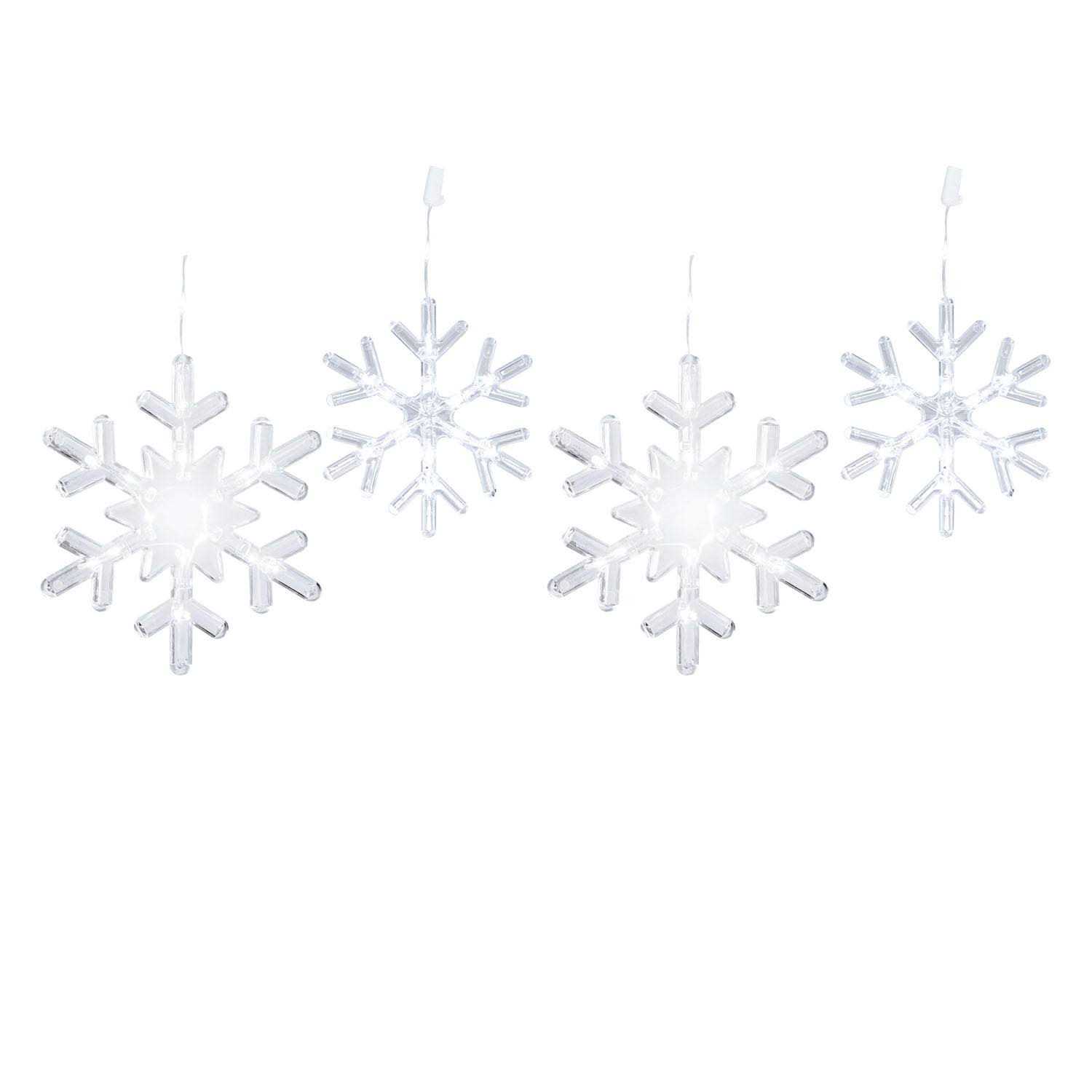 Recommended for both indoor and outdoor use, the snowflakes can be used in multiple locations in your house or yard that need some extra light or decoration. These lights will add a touch of elegance and flare to any place where they are hung.The 16 dual-sized snowflakes feature 248 micro LED wire lights with eight lighting functions to create a special ambiance. These functions include flashing, fading, twinkling and more. Roof awnings, overhangs, peaks and windows are great locations for these hanging snowflake lights because the drops lay naturally to create a professional and quality display with ease.The LED lights are mounted on an ultra-thin silver wire that is almost invisible at night, creating the effect of the snowflake floating in mid-air. Each lighting strand has a lighted length of 18 feet and can be connected to up to three of the same light strand.LED lights have a long bulb life of 25,000 hours on average which makes them environmentally friendly as this long life uses fewer resources over time. Member’s Mark Snowflake Lights in cool or warm white with white wire are available exclusively at Sam’s Club. The light set and the packaging are both recyclable and the lights will stay lit even if one of the bulbs burns out.