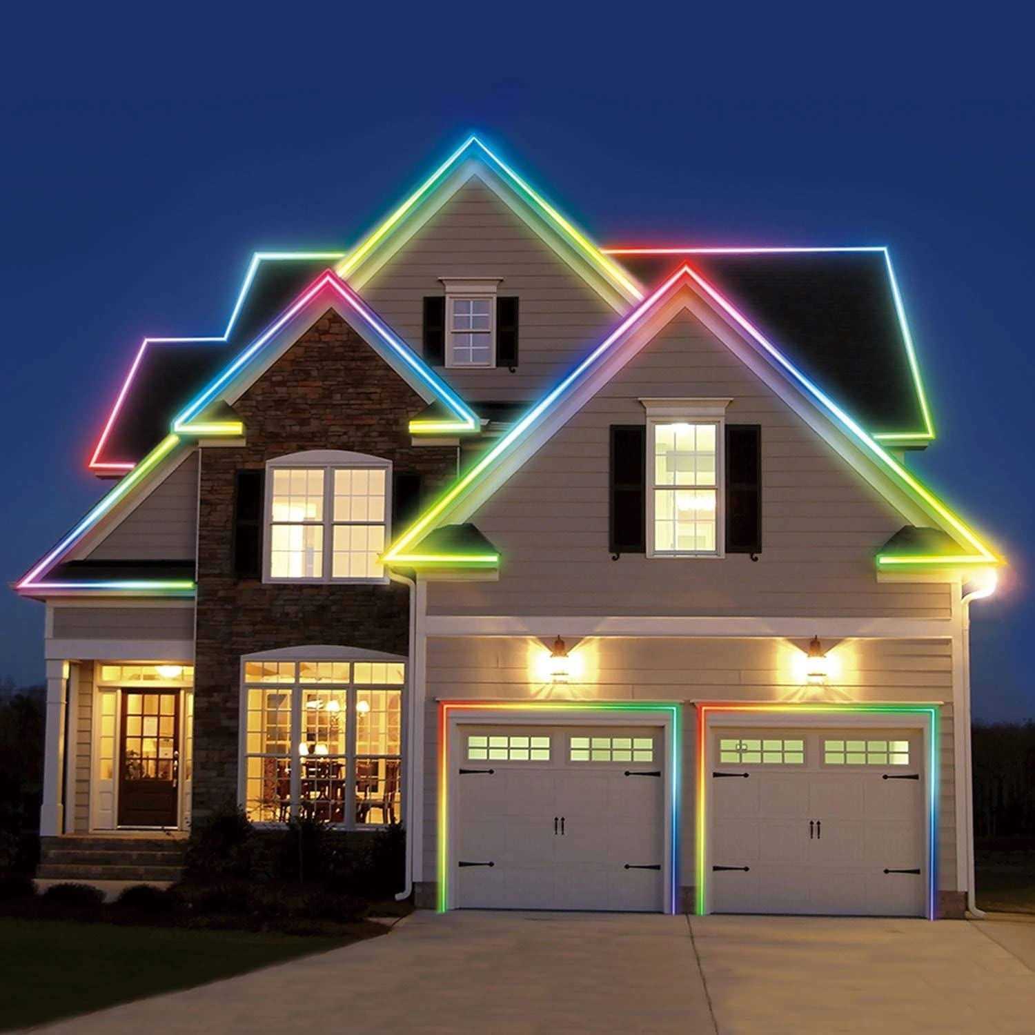 These LED neon lights feature color-changing LED bulbs that are bright, easy to use and offer unique lighting effects to create a special ambiance for all your holiday gatherings. Recommended for both indoor and outdoor use, this strand will cover a lot of space with a lighted length of 16.4 feet and it can be connected to up to two of this same light set to make a coloful accent to your roofline, windows, porches, bannisters and a variety of other indoor and outdoor spaces. One of the best features of these LED Neon Strip lights is the ability to create different lighting effects with the remote control included. Functions include 14 color settings, 9 chasing effects and speed control. The LED lights are environmentally friendly as they have a longer life resulting in fewer resources used over time. Each strip light has an average bulb life of 25,000 hours. The lights stay lit even if one bulb burns out and remain cool to the touch when lit. Both the light set and the packaging are recyclable.