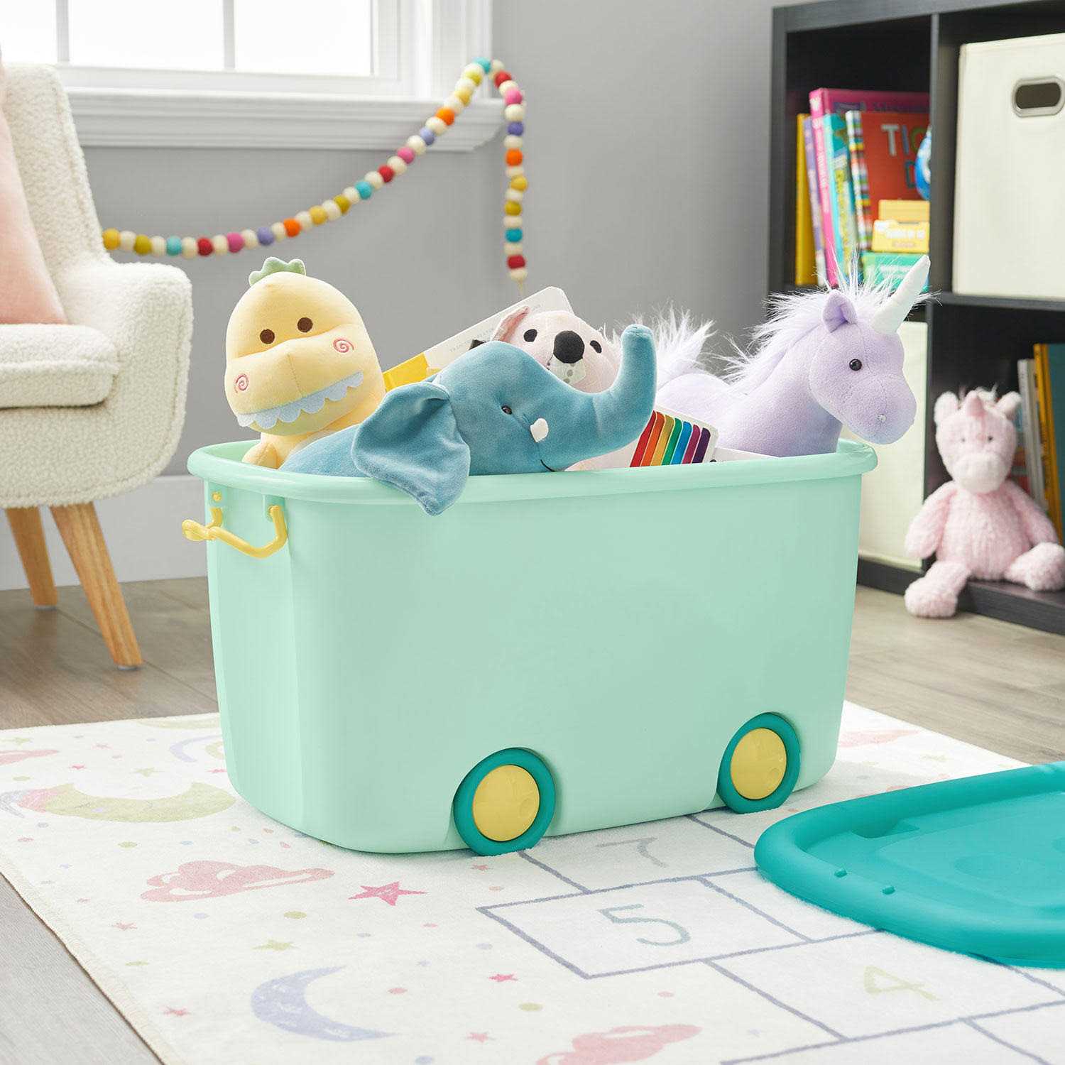 This Member’s Mark Kids’ Tote With Lid is a stylish and decorative storage solution for any home. This tote is an excellent addition to any kids’ bedroom, playroom or storage area. Use it to store a wide variety of items including toys, blankets, pillows, books, puzzles and games.The Member’s Mark Kids’ Tote can be free standing on floor, or you can stack multiple totes. The kids tote measures 22.8′ x 15′ x 12.2′. The easy-open top allows for instant access to what’s inside Handles on the sides make this easy to lift and wheels make it easy to transport.The sturdy material is convenient for stacking multiple bins. The trendy color offers unique design to beautify your child’s bedroom or playroom while simplifying storage. The material is lightweight, durable and easy to clean. Just wipe its surface with a clean, damp cloth. Safe, practical and easy to use, this tote can help you keep kids’ clutter to a minimum. The products make it easy to keep a beautiful home. This Member’s Mark Kids’ Tote can help you achieve the personal satisfaction and pride of a neatly organized and beautiful home.