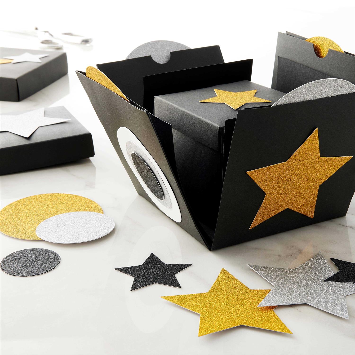 Personalize this black memory box with beautifully patterned paper, glitter, treasured photographs, and messages. It’s the perfect gift for close friends and family and an ideal project for DIY crafters! Age Group: adult.
