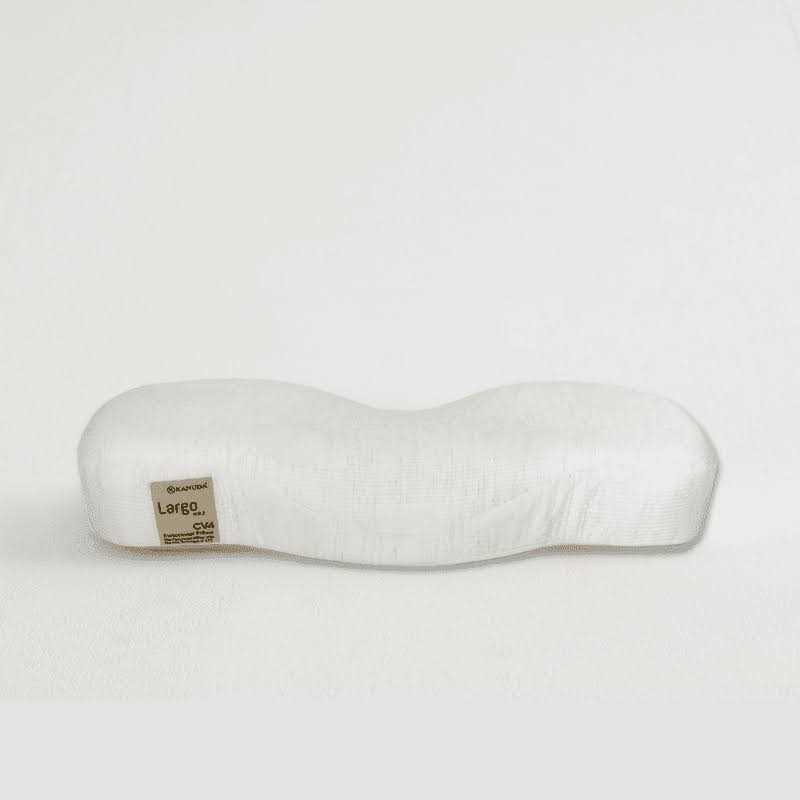 Kanuda The Largo pillow by Kanuda is designed to provide cervical spine and head support with softer firmness. It has a lower neck support and higher back-of-the-head elevation than the Blue Label pillows (Piano air, andante, allegro). Its smoother contour allows easier transition from neck to head and between sleeping positions. Most ideal for those with smaller physique, those with the relatively flat back of the head shape, and those who toss and turn often during sleep. Includes height-adjustment insert.