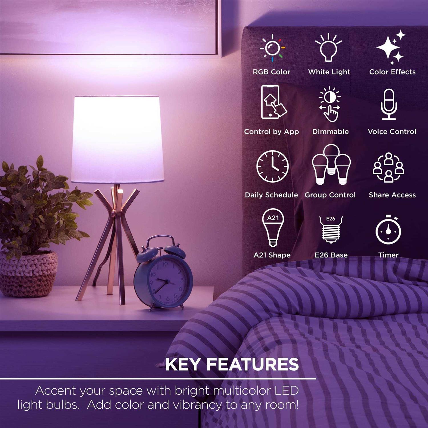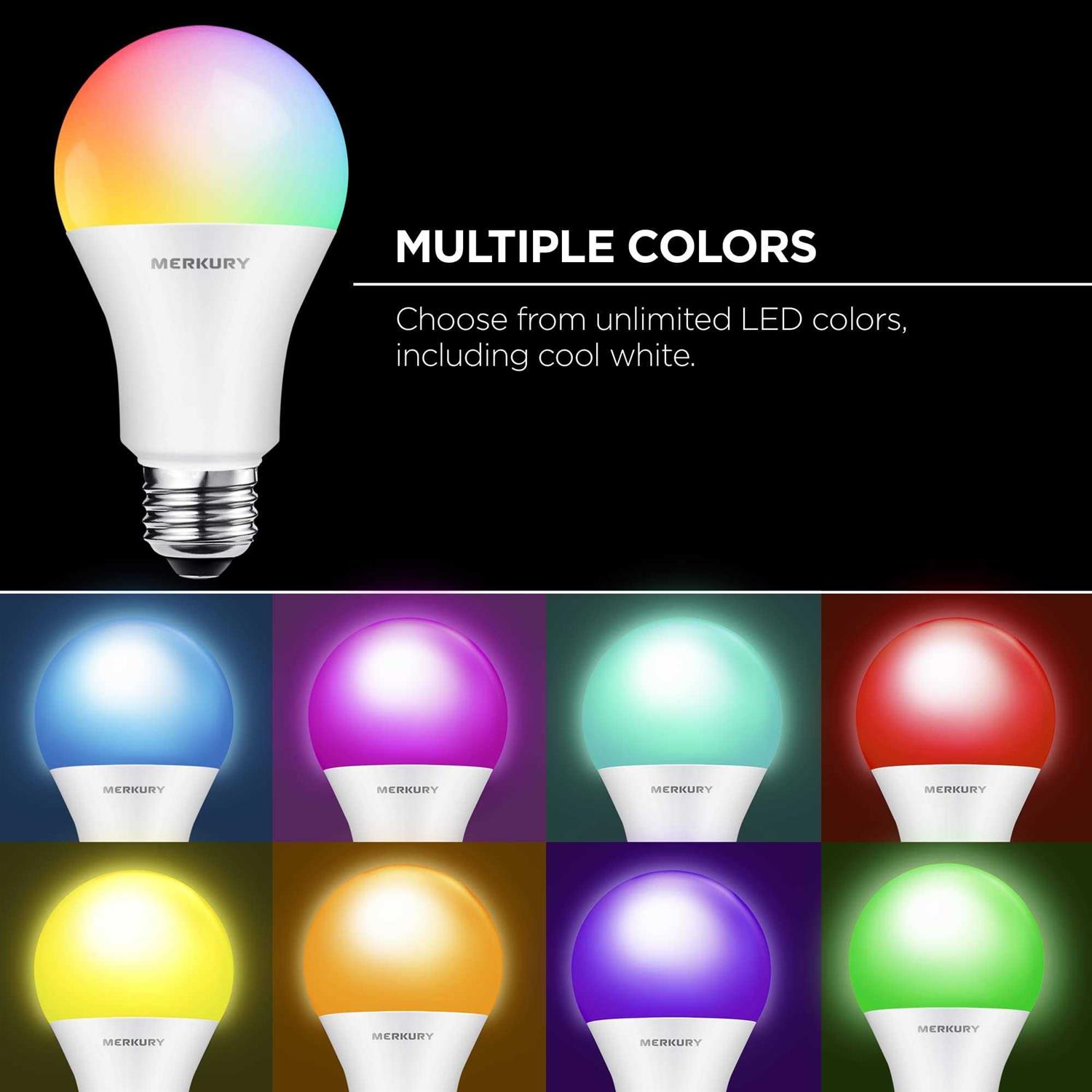 LED Bulbs by Merkury Innovations. Details:The Merkury Innovations Smart Light Bulb is a fully adjustable color bulb capable of millions of colors. It’s energy efficient at only 11 watts but bright at 1050 lumens, the equivalent of a 75-watt incandescent bulb. Pick a color and finely tune the brightness, saturation, and color temperature to your preferred setting. Group bulbs by room and turn off the entire living room with one tap. It’s simple to set up and controllable with your smartphone or voice through your home’s hub. You can schedule different colors of light for different times of day. Pre-planned lighting reduces energy costs and saves you money. Utilize Away Mode and appear home when you’re not for additional security. Share access with the entire household and live smarter. No hubs required and it works with your already existing 2.4 Ghz Wifi network. Simply plug in and connect through the app. Being smart has never been easier. Ready to use anywhere around your home, such…
