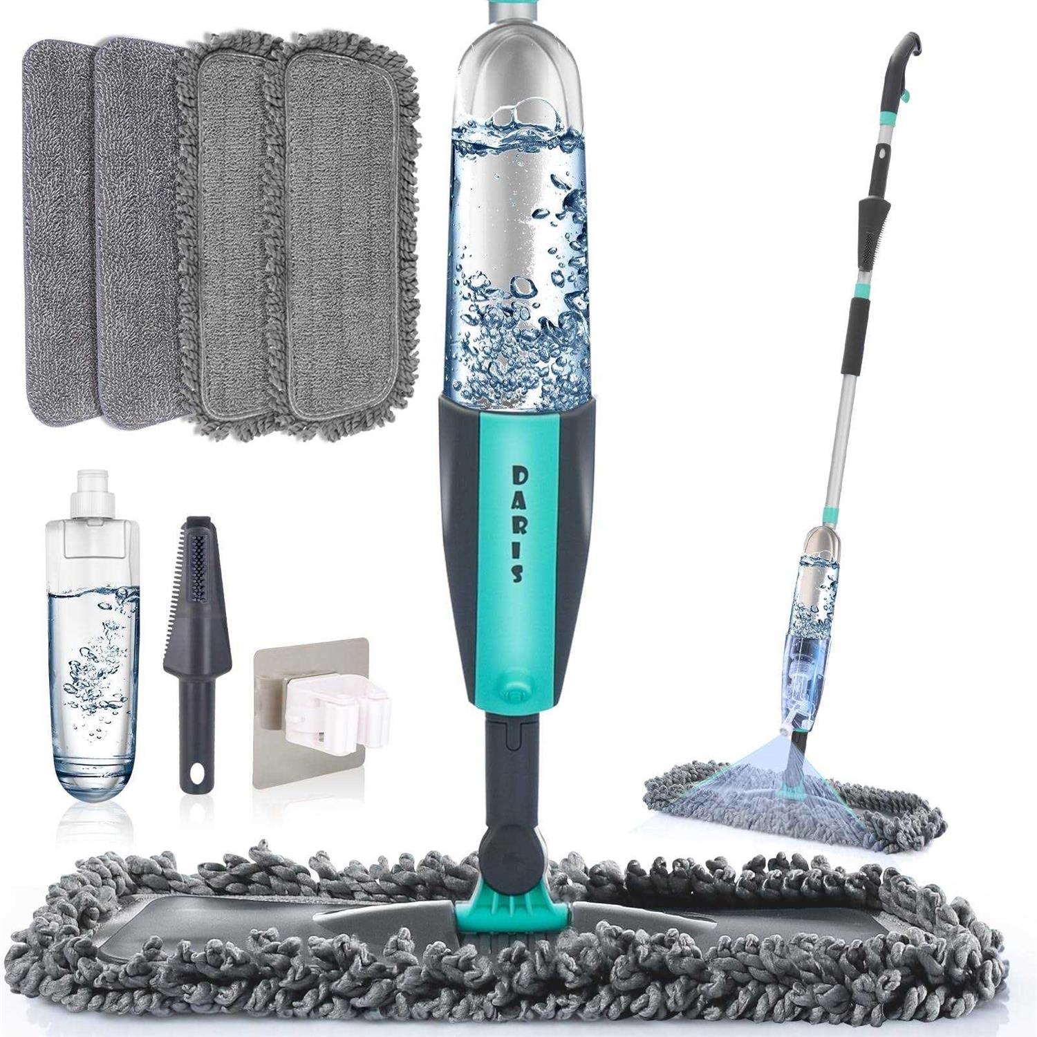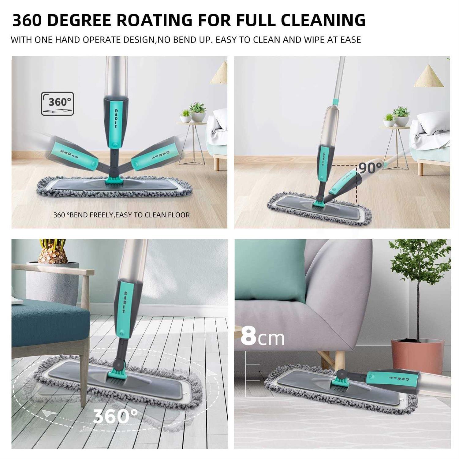 Profession Versatile Spray Mop – Harmless to floor, Our microfiber spray mop with light weight and made by high quality aluminum easy and simple for cleaning hardwood floor, laminate wood floor, ceramic tiles and etc.No bending, no bucket, all you have to do is press the spray trigger of floor mop to get the cold water mist you need. Easy and Simple to Use – The dry wet mop head can rotate 360 degrees, making floor cleaning even more hassle-free and easy to control. Our microfiber mop can easily be maneuvered into all corners and hard-to-reach areas. Remove dust from under your sofa, bed, around table legs, or any other tight spot, and it works well on many surfaces, even the most stubborn dirt can be dealt with quickly and easily. Efficient Floor Cleaning – No more heavy messy bucket, our spray mop come with a 360ML water tank, you could fill with your favorite cleaner, just make sure clean the water tank when you finished the cleaning. Simply push the trigger on the handle, it turns water to water mist evenly, save water and make mopping efficiency with minimize efforts than the regular mop. (Not recommended for strong acidic liquids) Premium 4 Reusable Dry & Wet Microfiber Pads – Mop pads have millions of microscopic fibers, which is super absorbent and can effectively grab debris, dust, and hair. The pad absorbs the water quickly, floor dries in minutes and there is no watermarks/shadows on the floor after cleaning. It comes with 4 microfiber pads, which is machine washable and reusable, no need to constantly buying the disposable cleaning pads anymore. Extra Scraper and Mop Holder – The multifunctional scraper is given to squeeze water on the spray mop, dirt and stains on floor/tile, the side of the comb shape can remove the hair on the floor mop, which make the cleaning job much easier. The mop holder no need drilling, easy hanging mops and brooms, saves space for the house Product include: 1* spray mop , 1* water tank, 4* mop pads, 1* scrub brush, 1* mop holder