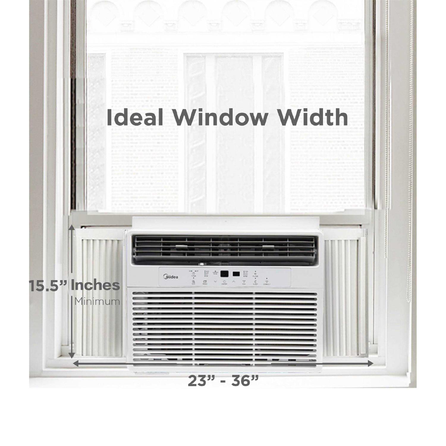 The Midea 14,500 BTU 115V Smart Window Air Conditioner with ComfortSense Remote will keep you feeling cool during those hot summer days! Mideas new SmartSense remote adjusts the cooling setting based on the location of the remote! With 3 cooling modes and 3 fan speeds there is a setting perfect for your comfort! The Midea 14,500 BTU 115V Smart Window Air Conditioner with ComfortSense Remote is ideal for cooling large spaces up to 700 sq. ft. The Midea 14,500 BTU 115V Smart Window Air Conditioner with ComfortSense Remote and electronic controls lets you control the temperature and fan speed from across the room. The Midea 14,500 BTU 115V Smart Window Air Conditioner with ComfortSense Remote features a programmable 24-hour on-off timer with sleep mode for your convenience. The Midea 14,500 BTU 115V Smart Window Air Conditioner with ComfortSense Remote also comes with a change filter indicator button that lights up when it is time to remove and clean it. The Midea 14,500 BTU 115V Smart Window Air Conditioner with ComfortSense Remote is designed to fit windows 28-40.5 wide, and minimum height of 18.5.