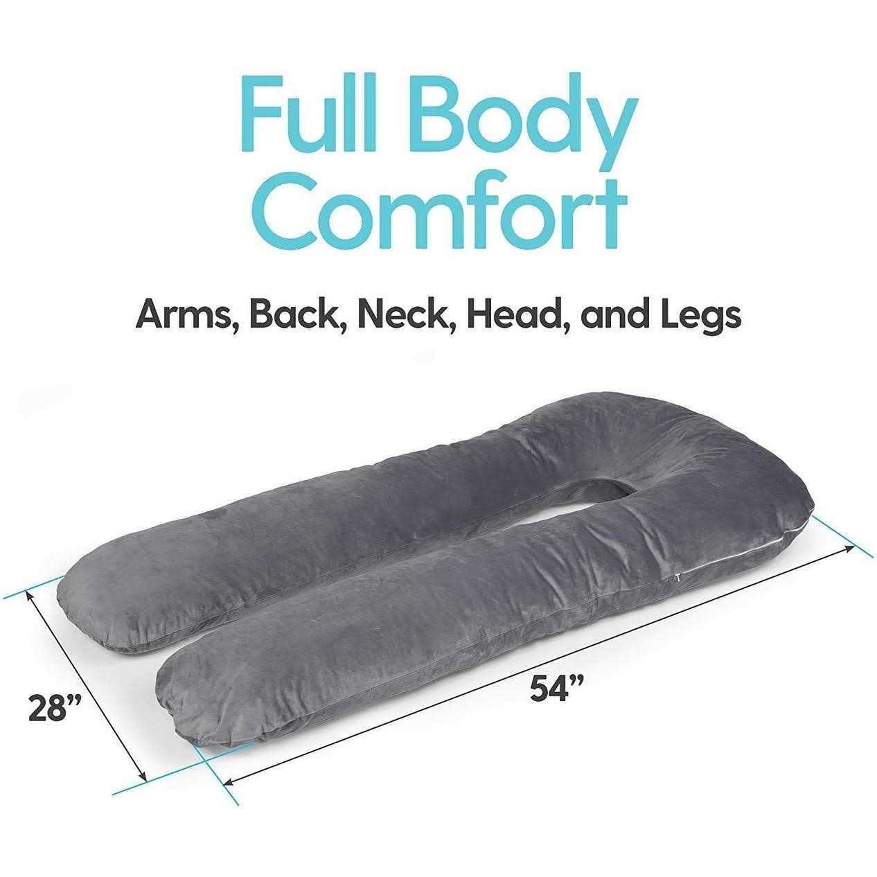 U Shaped Pillow Support u2013 Offering long, ergonomic positioning, U body pillows can be used to support and relieve pressure from your arms, back, neck, head, or legs. Customizable Comfort u2013 Inside our long body pillows is thick, cushioned memory foam that can be added to or removed to help you find just the right level of softness. Full-Body Design u2013 Like a relaxing hug all through the night, these long u-shaped body pillows are great for watching TV, nursing children, reading, or sleep comfort. Pregnancy and Maternity Use u2013 A smart way to relieve belly pressure, back pain, or discomfort while pregnant, theyu2019re the best pregnancy pillow at any trimester stage. Multiple Sleeping Positions u2013 Perfect for side, back, or stomach sleepers, use it for sitting more upright, curling up in various positions, and even resting on the couch.