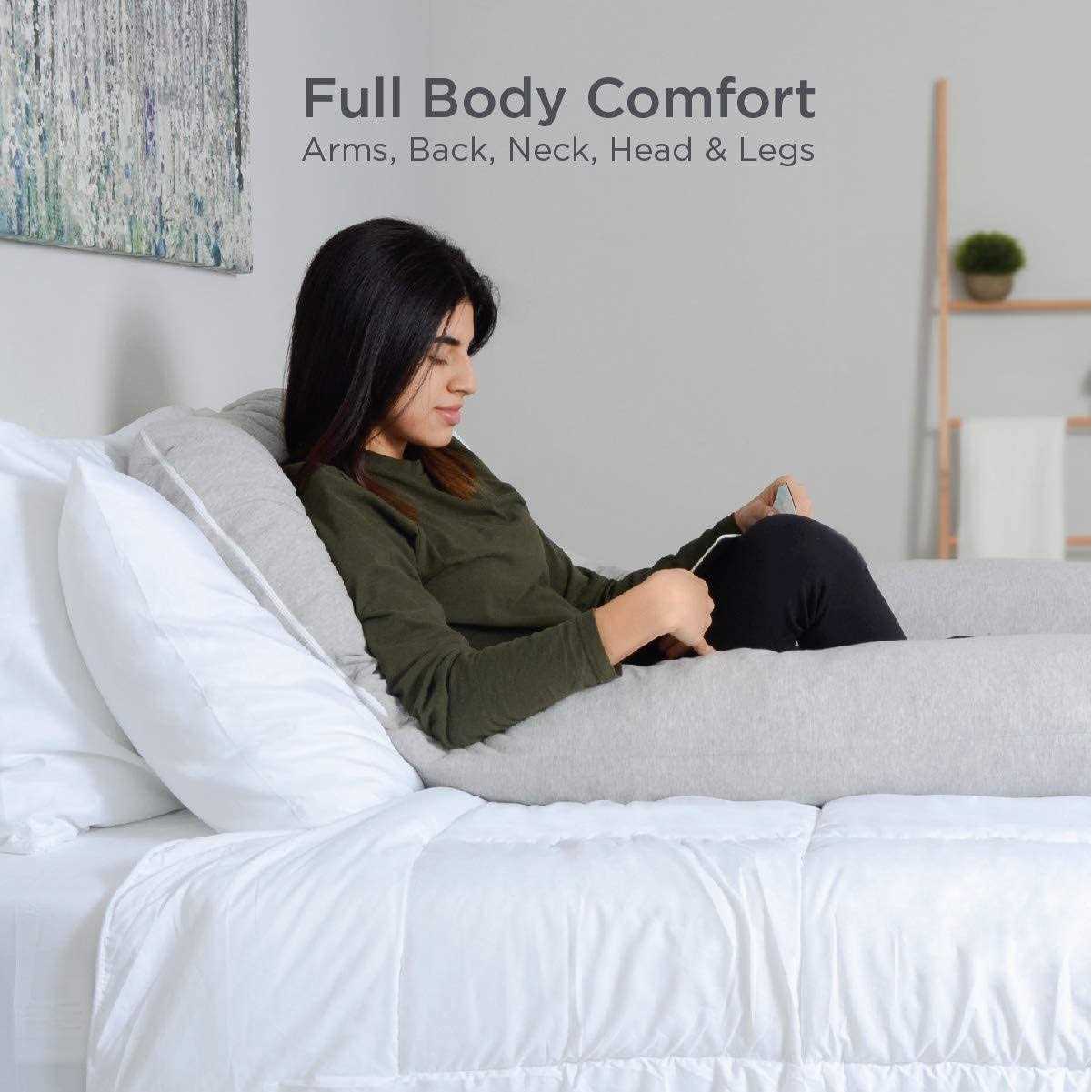 U Shaped Pillow Support – Offering long, ergonomic positioning, U body pillows can be used to support and relieve pressure from your arms, back, neck, head, or legs. Customizable Comfort – Inside our long body pillows is thick, cushioned memory foam that can be added to or removed to help you find just the right level of softness. Full-Body Design – Like a relaxing hug all through the night, these long u-shaped body pillows are great for watching TV, nursing children, reading, or sleep comfort. Pregnancy and Maternity Use – A smart way to relieve belly pressure, back pain, or discomfort while pregnant, they’re the best pregnancy pillow at any trimester stage. Multiple Sleeping Positions – Perfect for side, back, or stomach sleepers, use it for sitting more upright, curling up in various positions, and even resting on the couch.