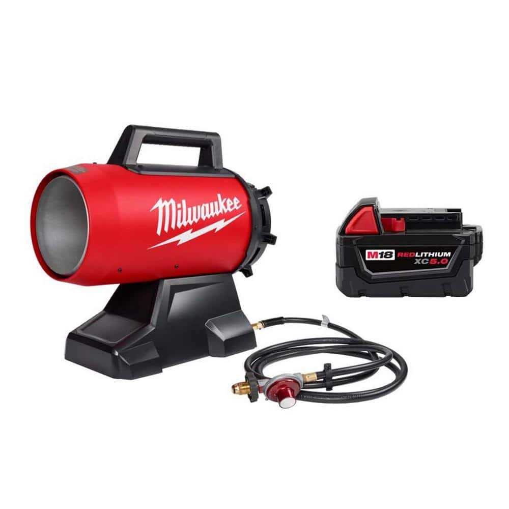 Milwaukee M18 70,000 BTU Forced Air Propane Heater with 5.0Ah Battery