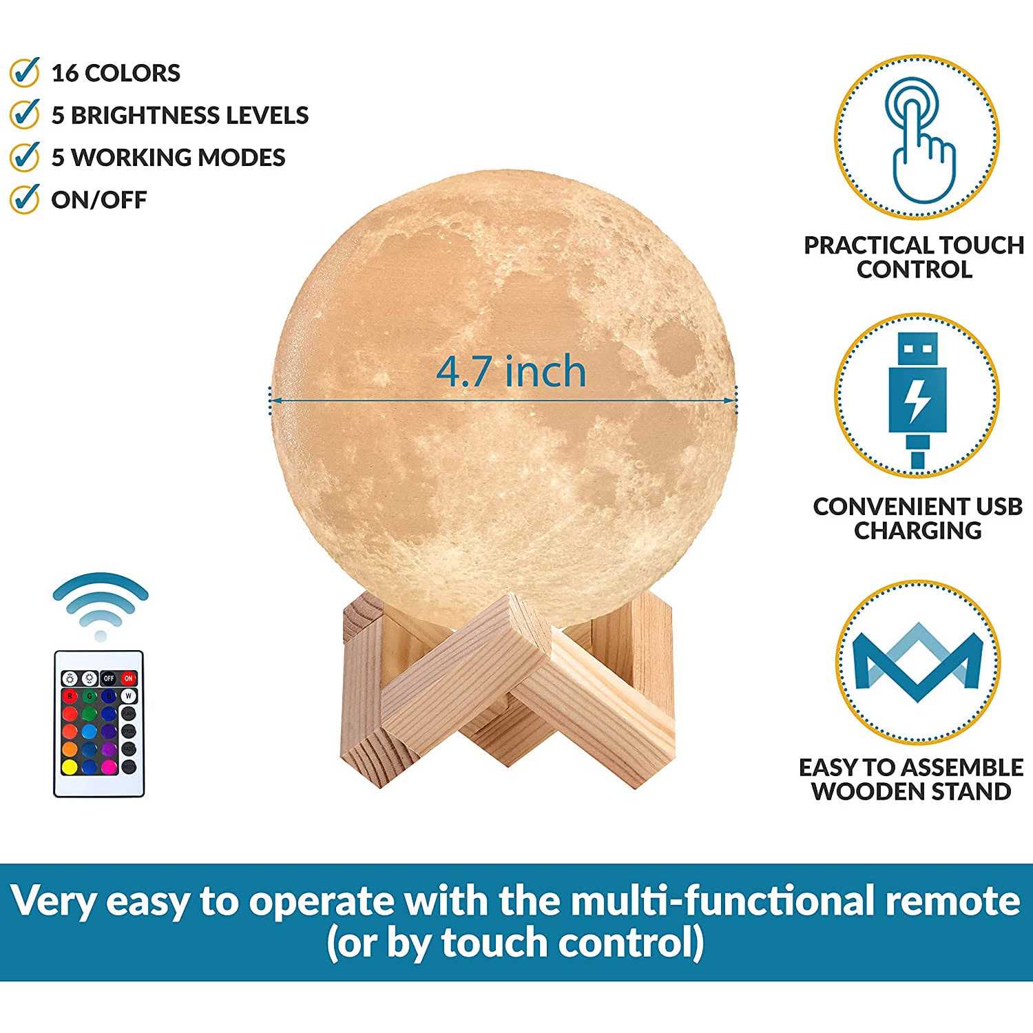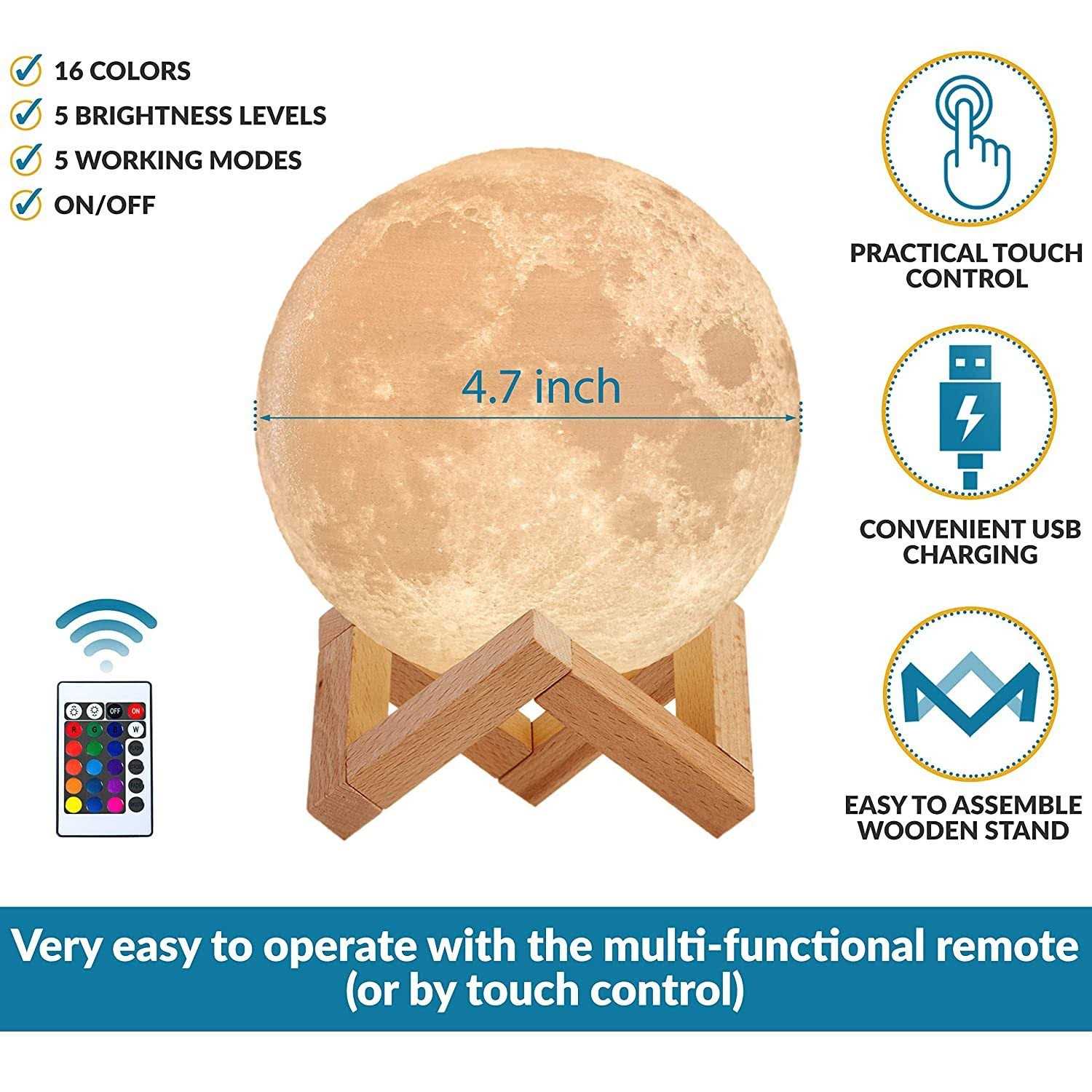 Be the first to review “Mind-Glowing 3D Moon Lamp Rechargeable Night Light with 16 Colors”
