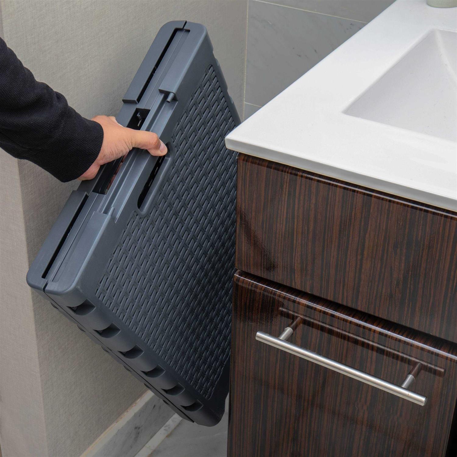 Stylish Folding Hamper This lightweight and durable bin has a unique folding design that allows you to store it in small spaces when you’re not using it. This versatile bin has many storage options. A great solution for toys, shoes, off season clothes, and pool toys without water accumulating in the basket. This convenient bin adds extra storage space to any room. It is also perfect for college dorms or anywhere space is limited. The ventilated design allows air to flow through the storage basket until you’re ready to do the wash. There’s no assembly required unfold it and its ready to use. To clean, simply wipe it with a cloth and mild dish soap.