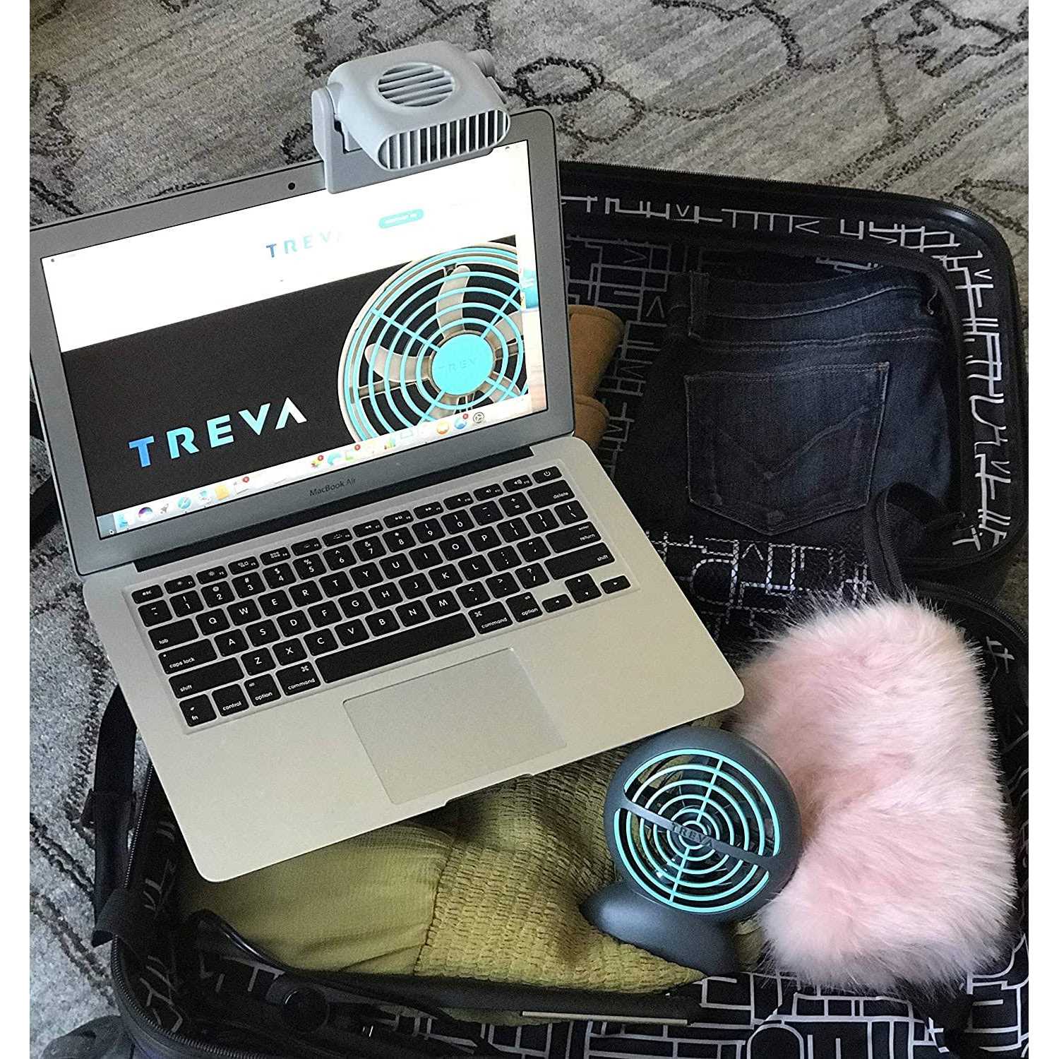Keep your cool while on your computer, laptop, tablet or cell phone with Treva’s Clip Breeze Personal Fan. Just clip it onto your screen and adjust the angle to receive the perfect refreshing breeze on your face and neck. Clips onto electronic devices to provide a cooling breeze on your face and neck Lightweight yet sturdy Strong clip works with any thickness of laptop, tablet or cell phone Adjustable airflow angle One speed Folds for storage Suitable for indoor/outdoor use Requires 1 AA battery (not included) Plastic construction Measures 4.13 inch L L x 3 inch W x 3.25 inch H Weighs 0.24 lb.