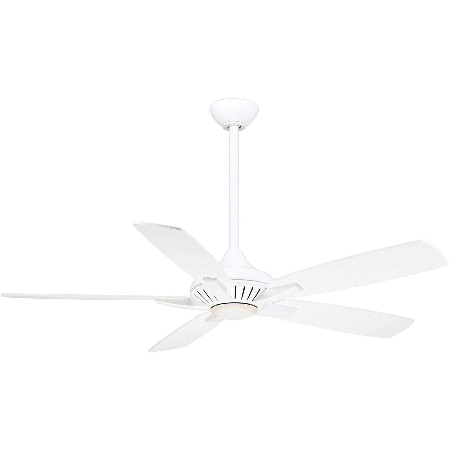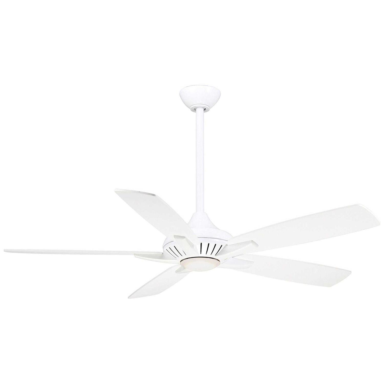 Minka-Aire Dyno ceiling fan comes with one 17-Watt LED lamp. It has five 52-Inch plywood blades in white finish that compliments any decor. Fan features white finish housing for corrosion resistance. Blade has pitch of 12-degree. This 3-speed remote/wall control fan has flow rate of 1772 CFM at low-speed, 3356 CFM at medium-speed and 5295 CFM at high-speed. Fan has 153 mm x 17 mm motor for efficient performance. It has voltage rating of 120-Volts and current rating of 0.23-Amp at low/0.4-Amp at medium/0.57-Amp at high-speed. It is suitable for indoor use. It has power rating of 11.230-Watts at low-speed, 31.71-Watts at medium-speed and 68.93-Watts at high-speed. This fan is standard or angled mountable. It measures 52-Inch x 52-Inch x 12-Inch. Ceiling fan is UL/cETLus listed.