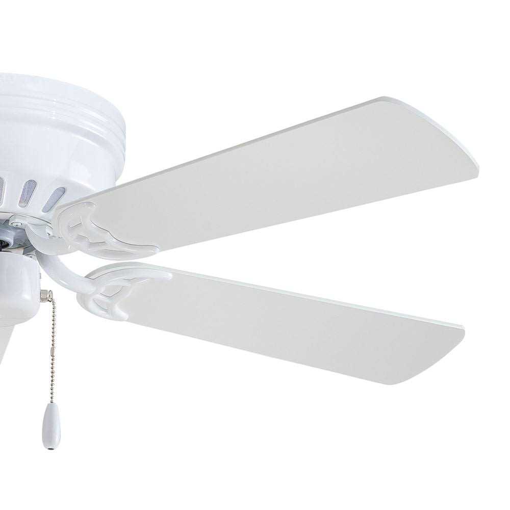 Minka Aire Mesa 42″ Ceiling Fan Model F566-WH in White with White blades. (Other light fixture options are also available and sold separately). The Mesa 42″ is a Ceiling Huggers style Ceiling Fan designed for use indoors only. This fan features a 153mm x 10mm Motor with a 12 degree blade pitch operating at 108 to 215 RPM. Performance data on high speed: Airflow: 3291 CFM. Energy usage (motor): 50 Watts. Efficiency: 65.82 CFM/Watt. Comes with a 3 Speed Standard Pull Chain. Other types of controls are also available and sold separately.