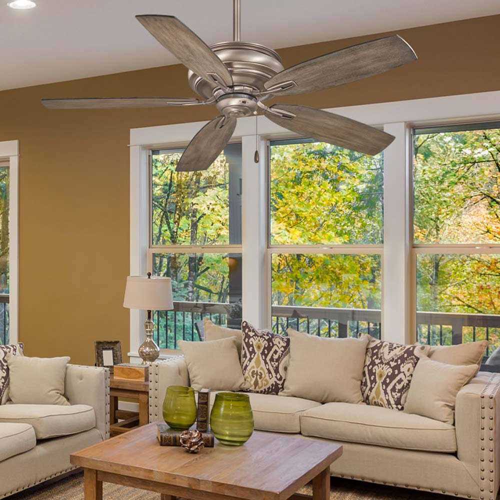 Other light fixture options are sold separately. The Timeless is a Transitional style Ceiling Fan Designed for use Indoors Only. This fan features a 188mm x 15mm Motor with a 14 degree blade pitch operating at 59 to 164 RPM. Performance Data on High Speed: Airflow: 6257 CFM. Energy Usage (motor): 71 Watts. Efficiency: 88.12 CFM/Watt. Comes with a 3 Speed Standard Pull Chain. 3 Speed Pull Chain. Other types of controls are also available and sold separately. Energy Star Qualified for Greater Efficiency.