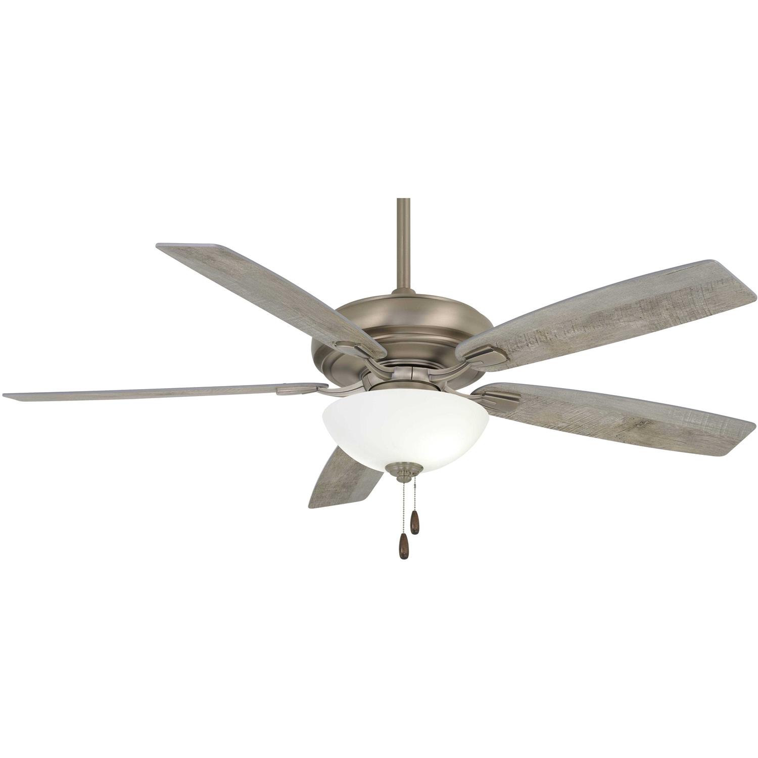 Floor-to-ceiling style reflects careful design elements that compose the Watt II LED Ceiling Fan from Minka Aire. A transitional motif is both simple and artisan, as five oar-shaped blades whirl at three individual speeds controlled by a single pull chain, with manual reverse functionality expanding its usage. This sleek metal and plywood fan is dressed up with a frosted glass shade that filters energy-efficient lighting for a soft glow.