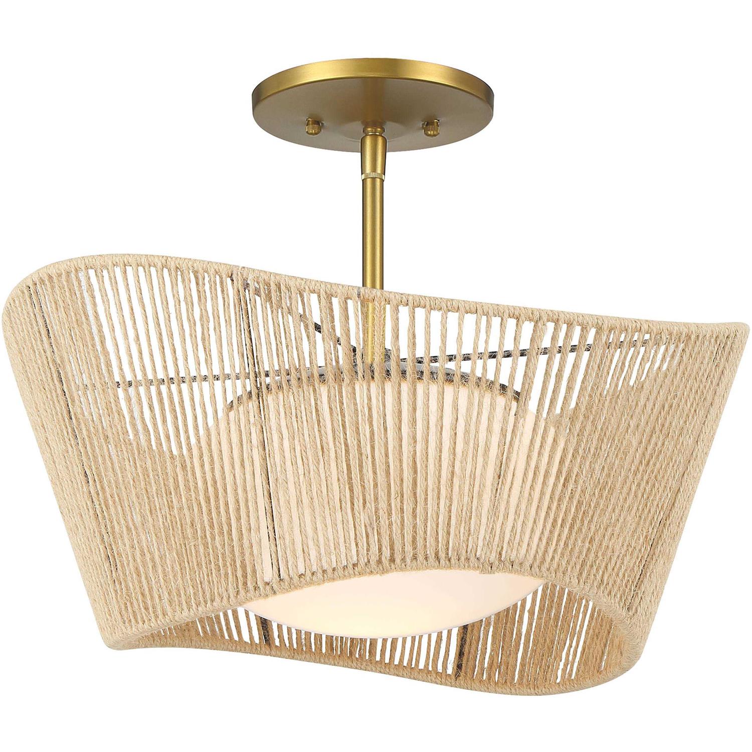 Introducing the Key Largo Collection by Minka Lavery – a stunning combination of tropical style and modern sophistication. This collection is designed to transform any space into a luxurious island retreat, with its elegant details and high-quality craftsmanship. Crafted with the finest materials and attention to detail, the Key Largo Lighting Collection features stunning pendants and a semi-flush that are sure to make a statement in any room. Each piece in the collection is inspired by the natural beauty of the Florida Keys, with intricate details that reflect the warmth and charm of island living. The collection features a smooth soft brass finish for the perfect look in your home or office. The elegant Etched Opal Glass and Metal Shape with Natural Rope Shade provides a beautiful silhouette effect when illuminated. The pendants are engineered to allow adjustable hanging height up to 36 in. With its combination of tropical style and modern elegance, this collection is sure to bring warmth and sophistication to any room.