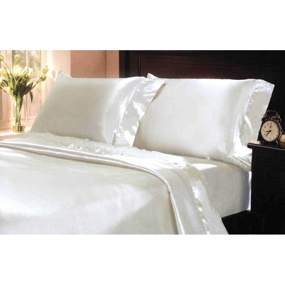 1 Pc Flat Sheet Queen: (90″ x 102″) 1 Pc Deep Pocketed Fitted Sheet Queen: (60″ x 80″ + 15″) 2 Pcs Pillowcase with 4″ Hem Queen:(20″ x 30″) Care: Machine Washable, Tumble Dry Low Type: Soft Silky Satin Solid Color MK Home 4 Pc Satin sheet sets are an indulgence to enjoy night after night. The luxurious satin polyester material is renowned for its silk like properties but only at a fraction of the cost. It is the same material most lingerie are made from. Treat yourself to many blissful nights .. Material: Polyester