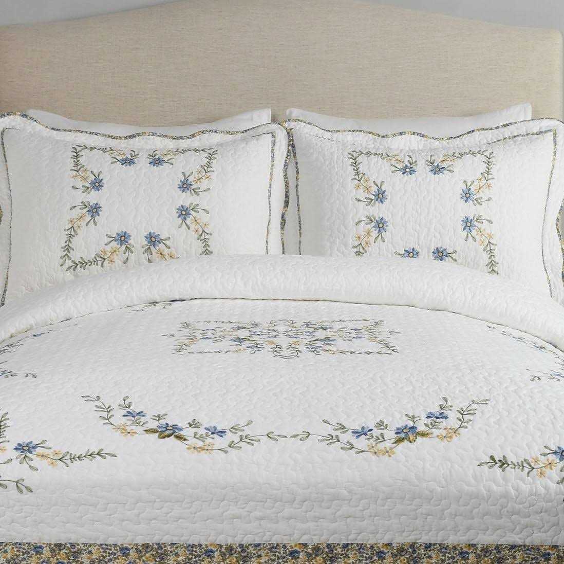 The Heather Bedspread will elevate your bedroom with class and simplicity. With blue floral motifs and delicate quilting, this bedspread will make your home feel relaxed and soothing. 100% Cotton Face and Fill; 100% Polyester Back Full size 96×110″ Pillow sham sold separately Machine Washable The Heather Bedspread will elevate your bedroom with class and simplicity. With blue floral motifs and delicate quilting, this bedspread will make your home feel relaxed and soothing.
