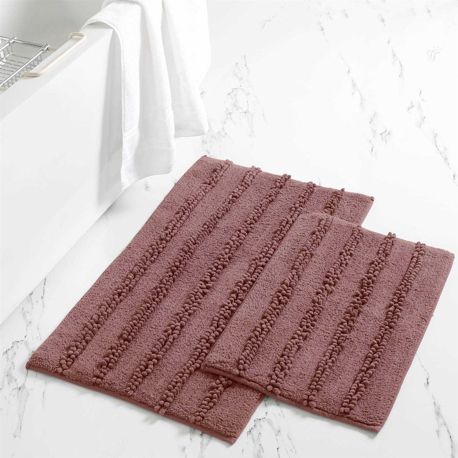 Boasting a soft chenille construction with a chunky design, these decorative bath rugs feel soft underfoot, providing your feet comfort as you step out of the bath. Featuring a simple woven design and a rectangular silhouette, these bath rugs easily blend with your existing decor, while the machine-washable design makes for easy maintenance. The set includes 2 bath mats measuring 17 by 24 inches and 21 by 34 inches. Color: Rosewood.