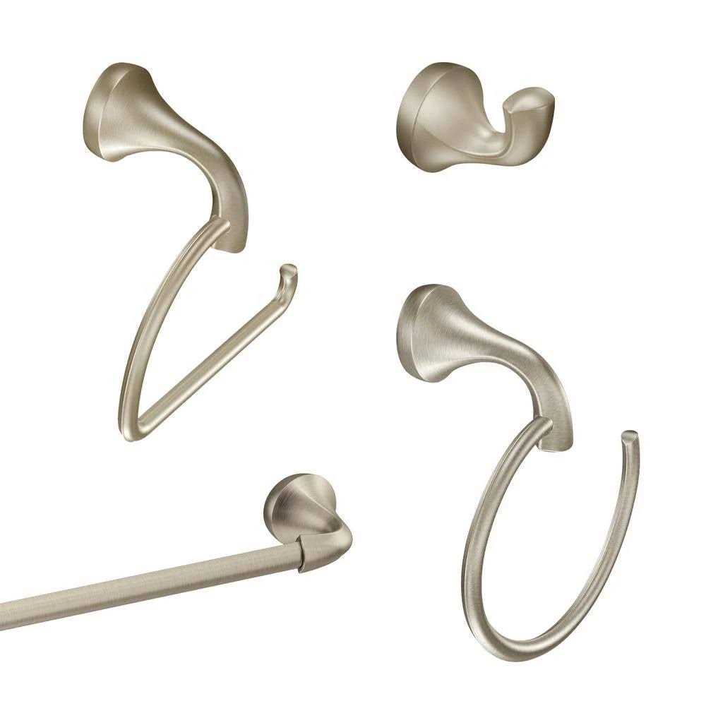 Moen Eva 4-Piece Bath Hardware Set with 18 in. Towel Bar Paper Holder Towel Ring A