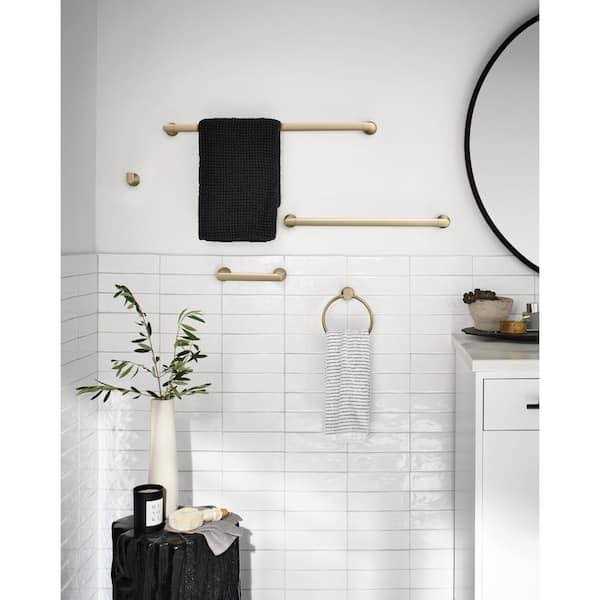 The Genta Bath Suite offers style with a dominating presence – for a look that appeals to a wide variety of residents. It is designed with user features, including curved edges and clear temperature indication and mass appeal that are essential in the multi-family and hospitality marketplaces but also provide that same appeal in residential applications. Matching accessories create a fully coordinated look throughout the bath. Color: Bronzed Gold.