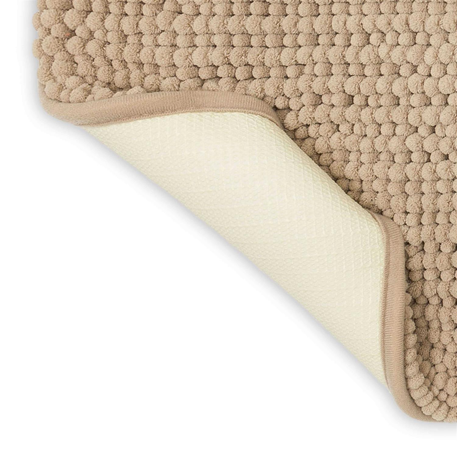 The micro-denier polyester chenille fiber of this bath rug is looped pile that creates great loft and resilience. The casual textures of this design complement many home decors, and this combination of thick and thin yarns creates easy-living style. Memory foam adds yet another layer of energizing loft to comfort and cushion bath lovers’ feet.