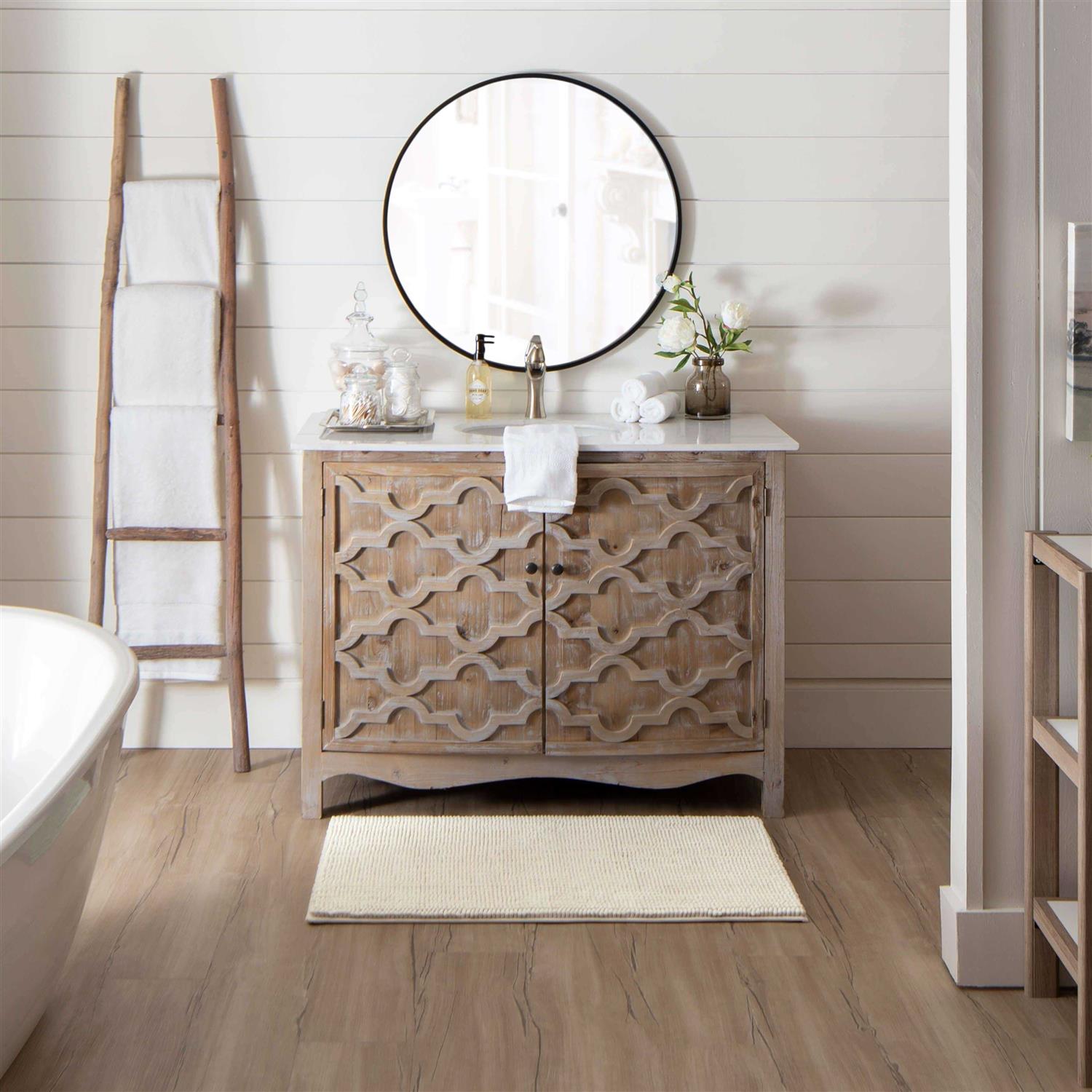 The micro-denier polyester chenille fiber of this bath rug is looped pile that creates great loft and resilience. The casual textures of this design complement many home decors, and this combination of thick and thin yarns creates easy-living style. Memory foam adds yet another layer of energizing loft to comfort and cushion bath lovers’ feet.