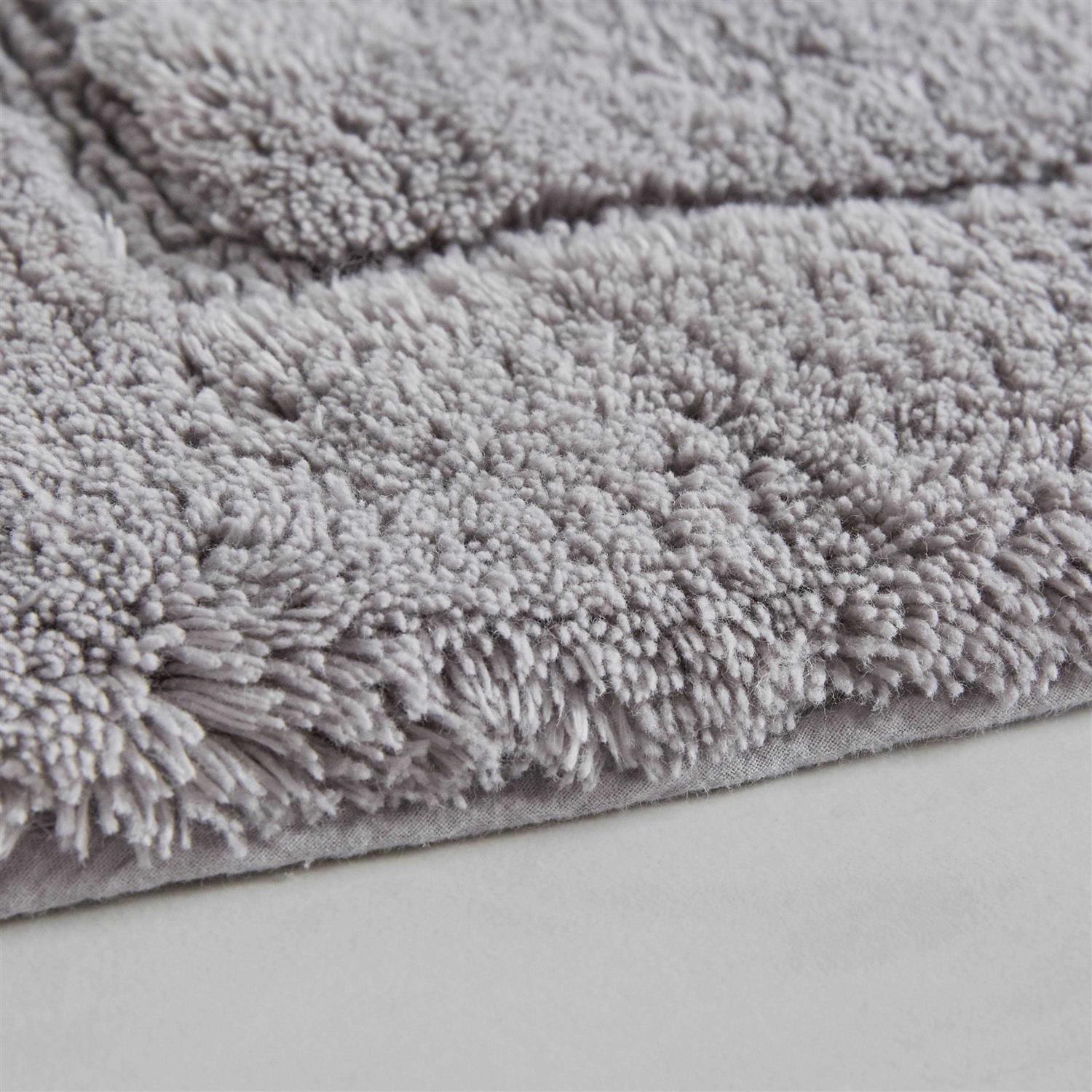 Premium cotton yarns of this bath rug are double combed to eliminate loose fibers, creating a lovely low-linting pile. The subtle luster and superior quality of our rug is drawn from the special spinning process called “ring” spinning that is utilized in the creation of this design. The densely packed cut pile is inlaid with a subtle looped pile, adding superior long-lasting attributes to the classic design. Color: Glacier.