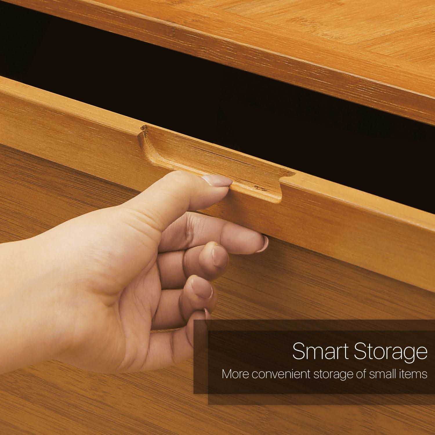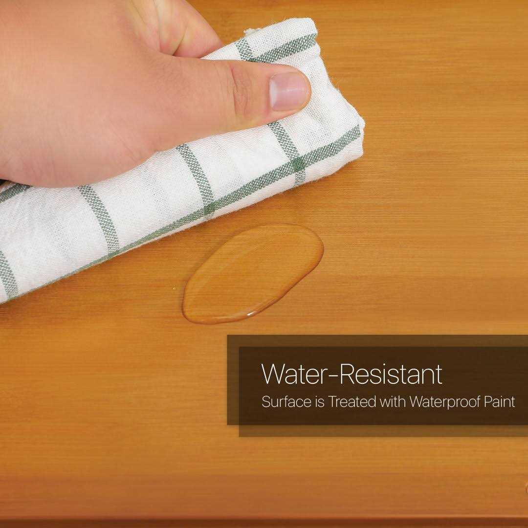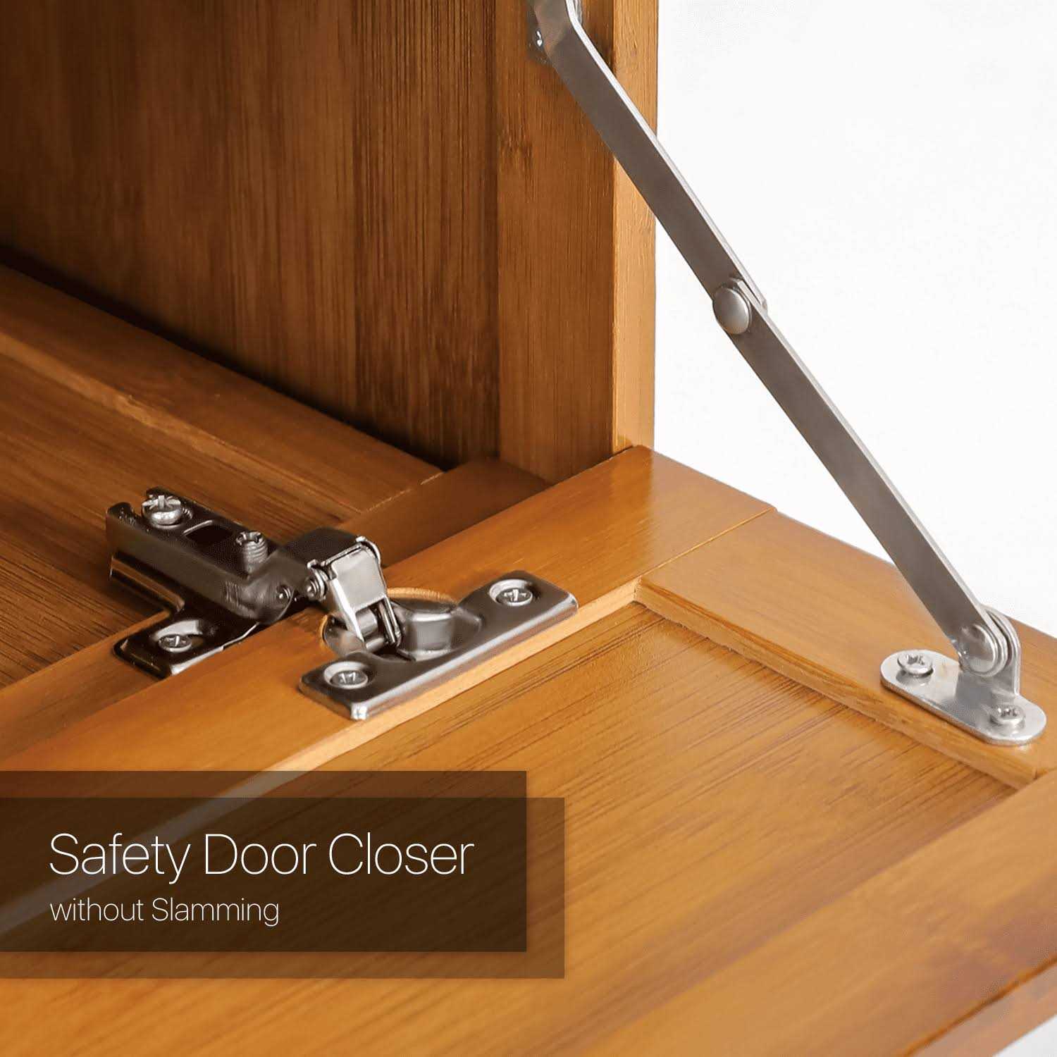 Try this bamboo shoe cabinet to get all your shoes in order. The natural surface adds an elegant appearance and with the environment-friendly material, bamboo, this cabinet takes your health problems and beautiful appearance into account. The water-proof coating makes the cabinet easy to clean. Pull-down style doors and backboards form an enclosed space to prevent the dust from dropping on your shoes. This five-tier tall cabinet provides a large capacity for your daily shoes. The top area is ideal for your preferred decorations like a plant, framed photo to make your entryway a personalized look.
