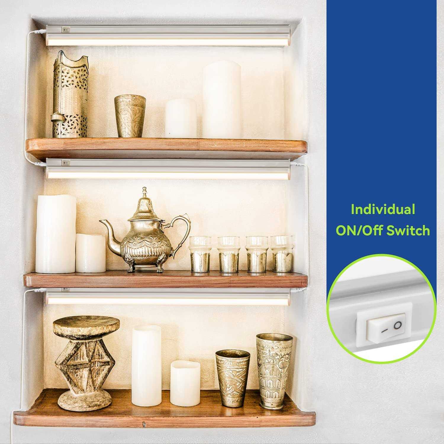 Have a nice mood by brighten your place with Monios-L Under Cabinet Linkable T5 Light Bar! Features: 1. Safety This light bar can easily be plugged in to any standard outlet, simply plug-in and turn on the light. 2. Convenience It provides visual clarity, ease while cooking, reading recipes, indulging in a late-night snack, cleaning, or easily work in sewing area, laundry room,workshop,ect. PACKAGE INCLUDE: 3 x T5 Under Cabinet Light 3 x Power Cords 3 x Installation Accessories 2 x 7.9 inches Connecting Cord 2 x 48 inches Connecting Cord6 x pads3 x Small Connector SPECIFICATION: