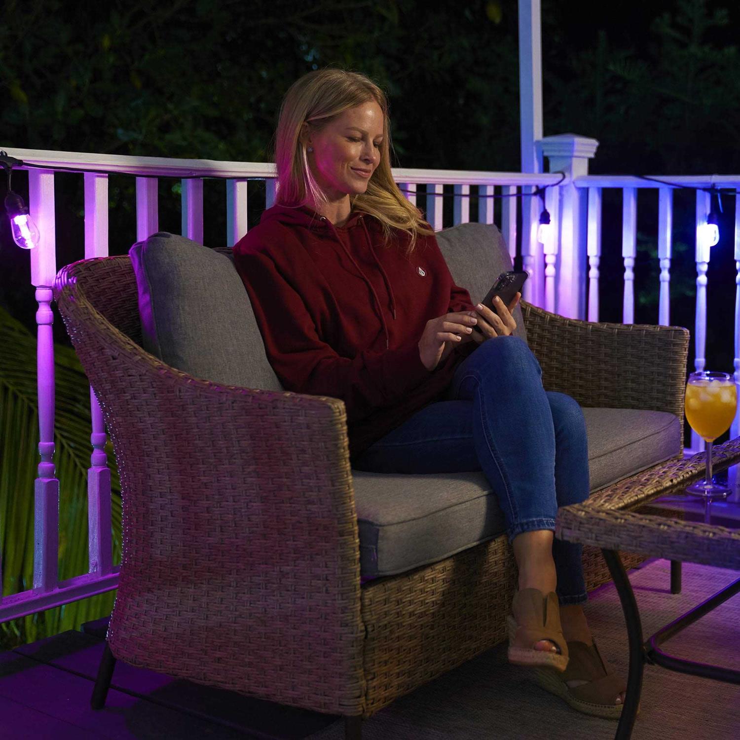 Having the right outdoor lighting can often enhance any party or gathering. The Monster Smart Illuminessence 35ft Bistro+ Patio String Light allows you to do just that. You’ll be able to create unique multi-color and dimmable LED light effects for both the entire strong and even individual lights. The resulting lighting can move up and down the row uniquely and dynamically. Our lights are designed to be water-resistant and can work in both outdoor and indoor settings. Download the Monster Smart App to your phone and you’ll be able to make custom modifications from anywhere anytime you want. You can also use Amazon Alexa, Google Assistant, and Siri in conjunction with it to give you full voice control over your lighting arrangements. Make your outdoor environment the best it’s ever looked with the Bistro+ Multi-Color and Multi-Zone Patio String Light.