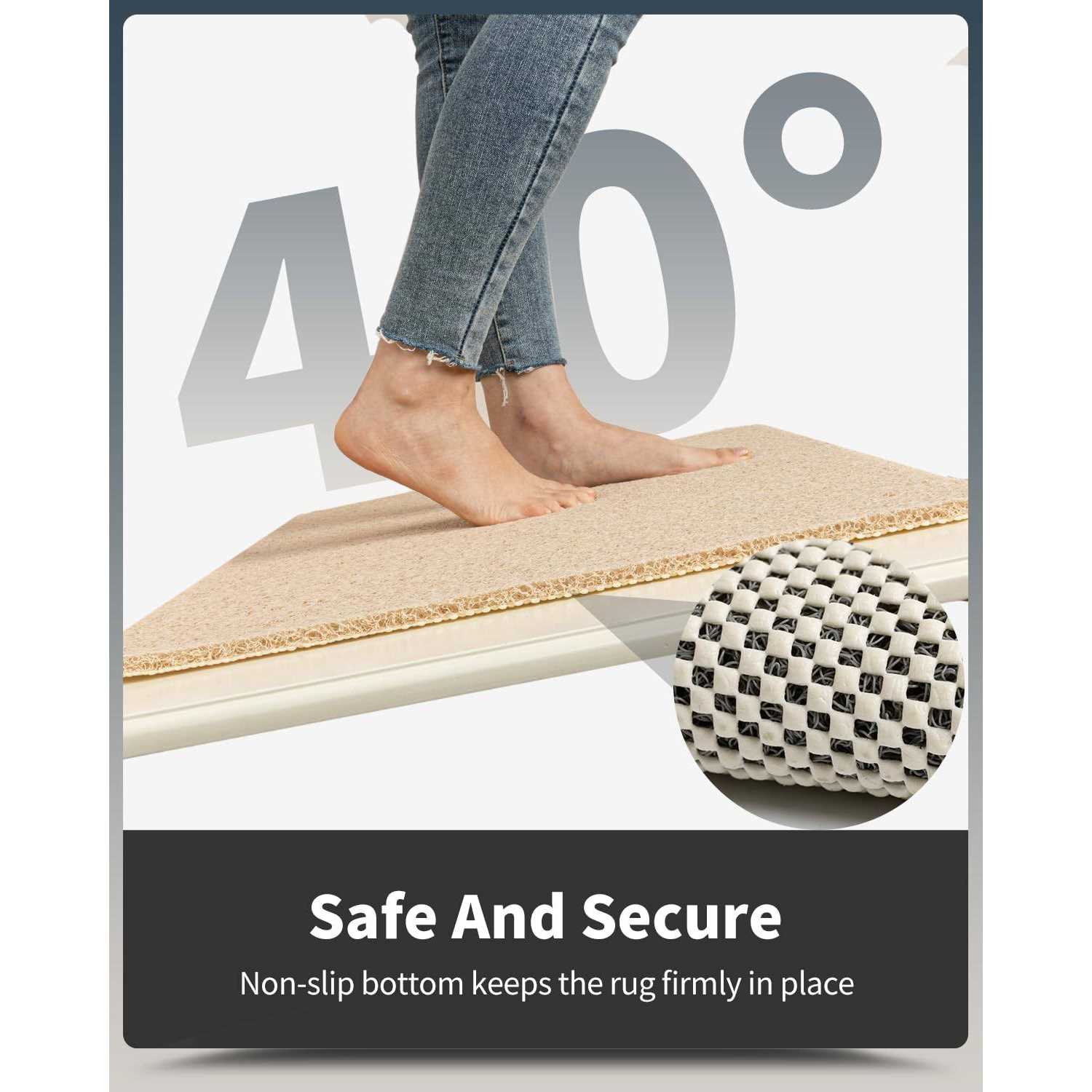 Non Slip & Durable: Instead of traditional bath mats with difficult cleaning suction cups, which may slide around and damage your tub or floor surface, our bath rugs have more practical and durable plaid backings. The lattice patterns on its bottom can ensure the safety of your family by holding the mat steadily in place. Elderly people and children welcome. Comfort Shower: Soft loofah-like textured surface of ideal thickness makes this shower rug comfortable for your shower in bare feet. Besides cutting the cold hard floor off from your body and providing a warm support, it also gently massages and exfoliates your skin. Outstanding Draining: As natural drain holes, loop surface and lattice bottom can work together to encourage water to flow past the bath mat without getting caught. No need to worry about blocking water. Easy Cleaning: The foam on top can be easily rinsed off. You can simply use a showerhead and just leave the mat with lattice bottom up on your bathroom floor, or hang over your bathtub, your bath safety bar. The mat can dry fast, which creates no smell or marks on your floor. Safe To Use: Made from all premium recyclable materials, our odorless bath drying mat with nice neutral colors has more reliable quality. Phthalate Free. Safe and ideal for any use in your private home and public places, like restaurants, hospitals, nursing homes, schools, childcare facilities, etc. P /P P /P PVC high-quality bathtub mat. The non-slip mat is loop design so that water can pass through without remaining. Made of high-quality materials, soft, durable, and stable. A non-slip layer is added to the bottom of the shower mat, which is suitable for all places in the bathroom and also suitable for other wet surfaces.
